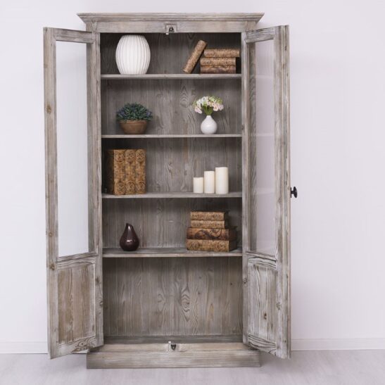 Bibliothèque vitrée en pin massif, largeur 110 cm, conçue pour allier charme traditionnel et fonctionnalité moderne. Sa structure en pin massif garantit robustesse et longévité, tandis que les deux portes vitrées avec fermeture à crémone protègent vos livres et objets tout en les mettant en valeur. Intérieur optimisé avec étagères stables adaptées aux volumes courants d’ouvrages et d’objets déco, montage soigné et finitions de qualité pour une utilisation quotidienne durable. Pièce polyvalente pour salon, bureau, entrée ou chambre, offrant un rangement visible et une protection contre la poussière. Possibilité de personnaliser le meuble selon vos préférences et d’ajuster les dimensions et options sur le site.