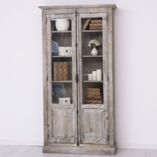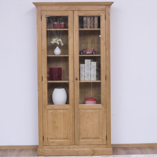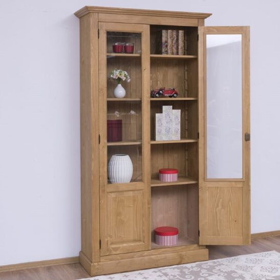 Bibliothèque vitrée 2 portes en pin massif 110 cm