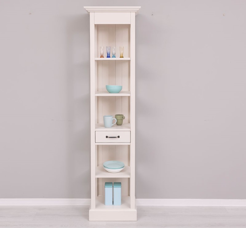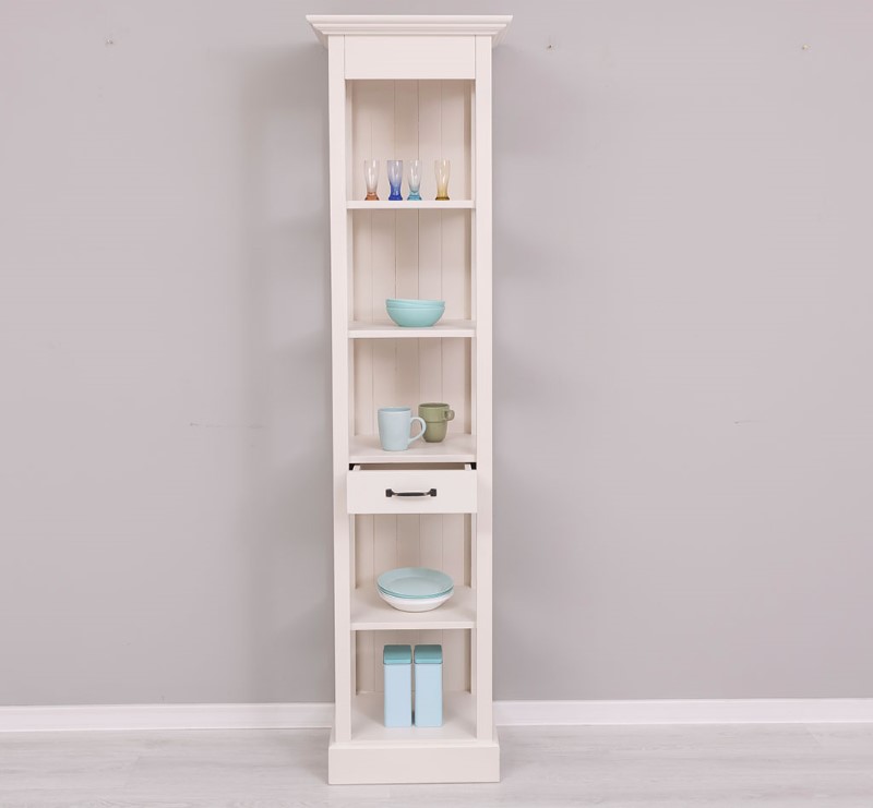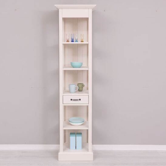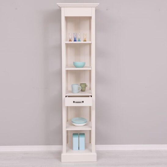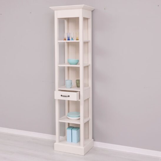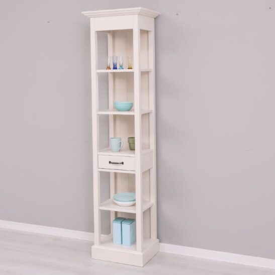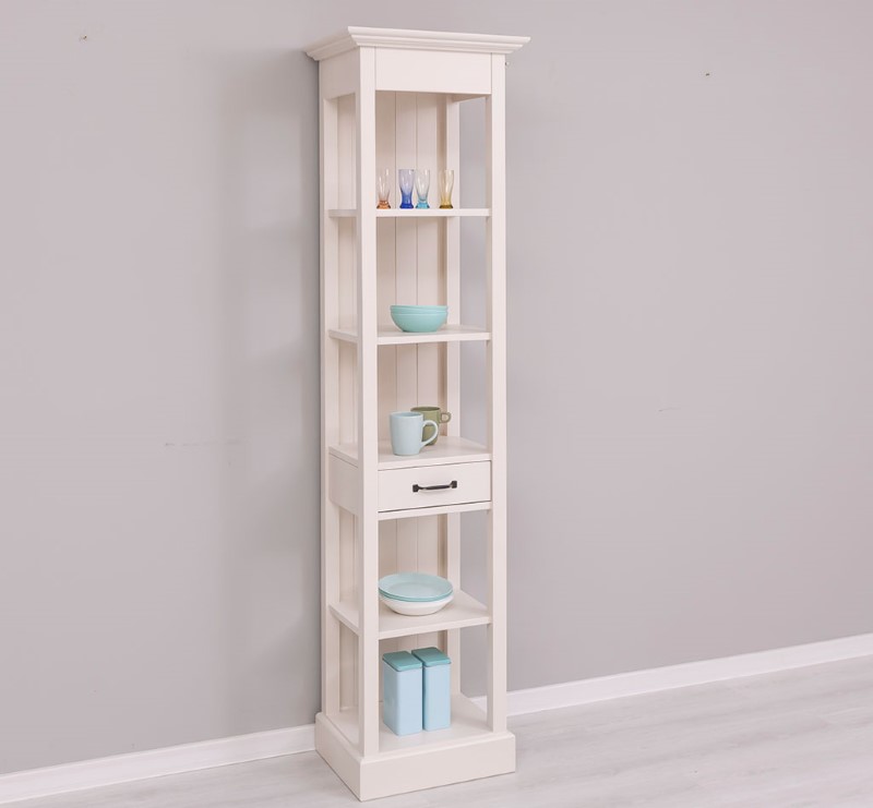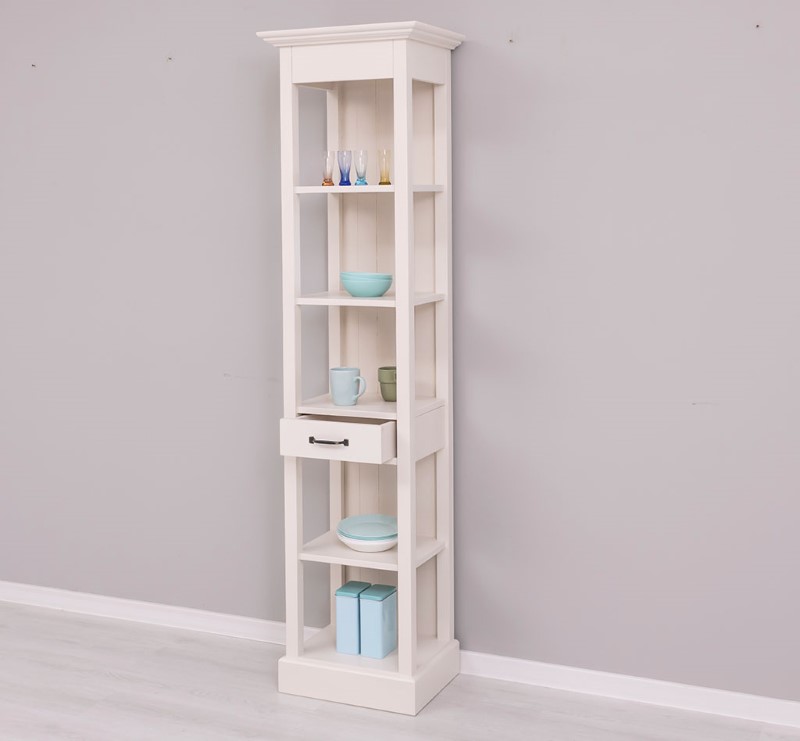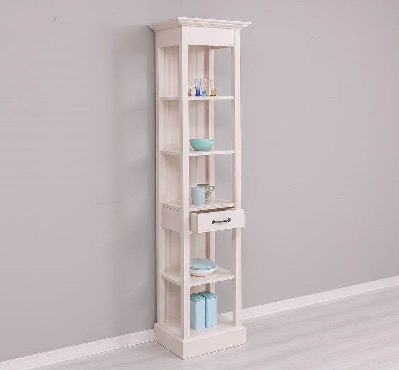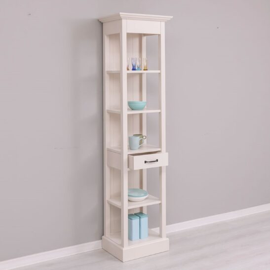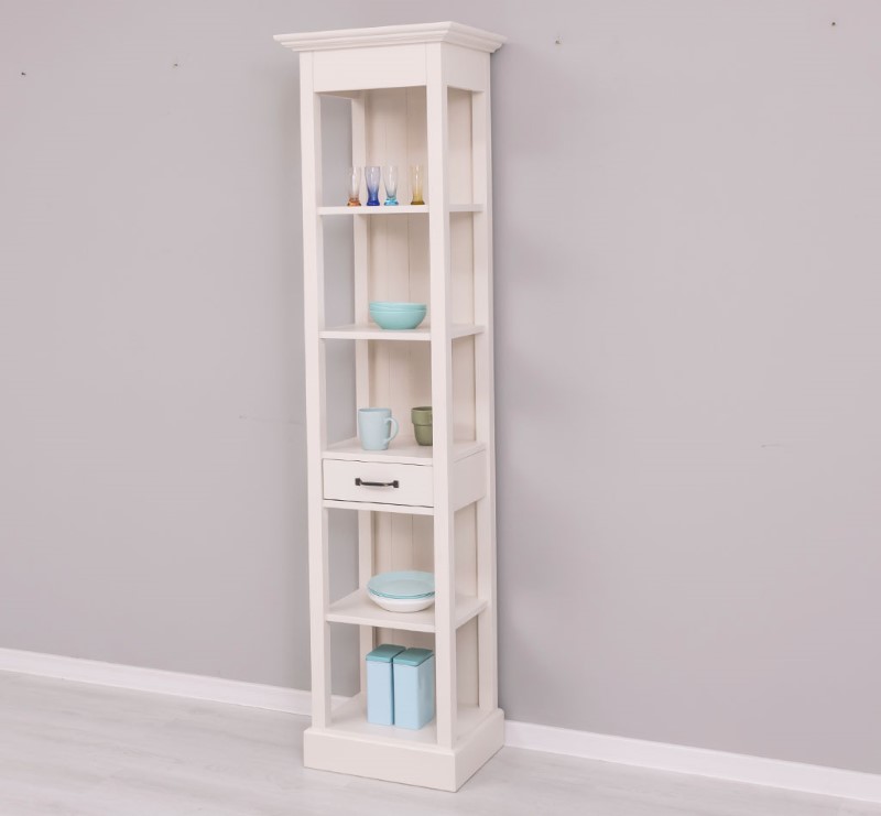 étagère étroite ajourée en pin massif blanc de lait un tiroir hauteur 197cm