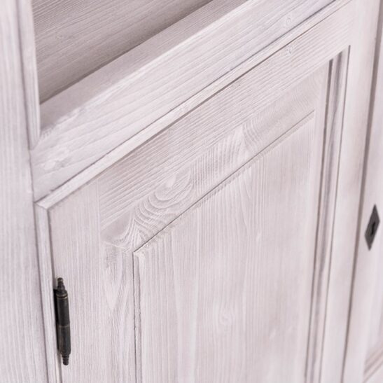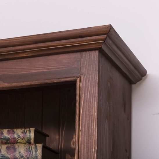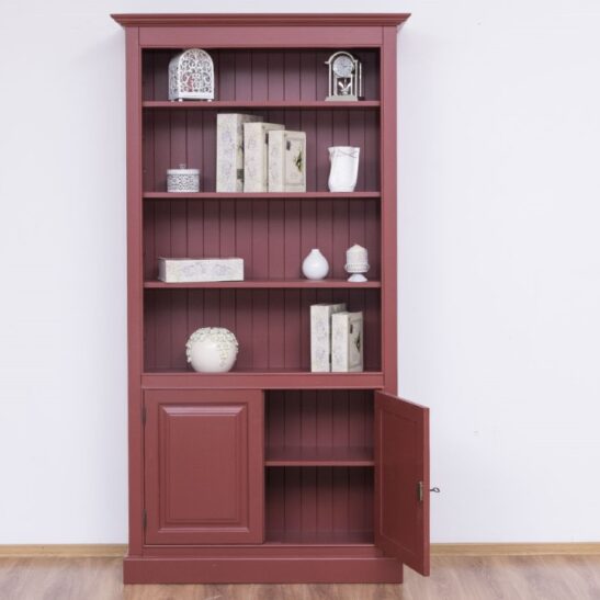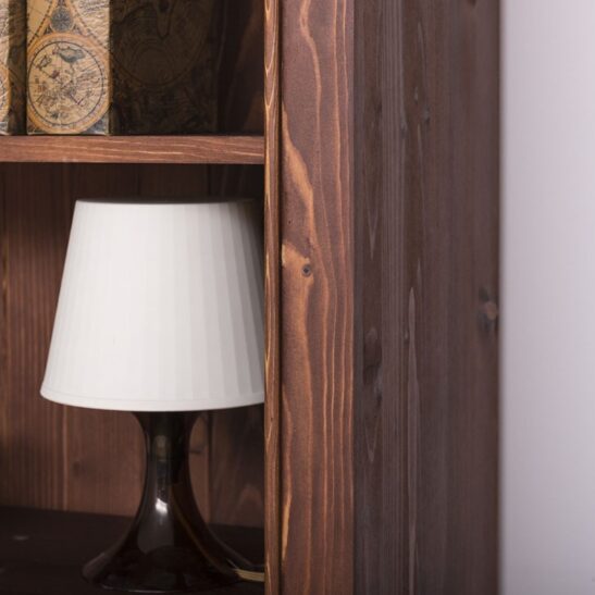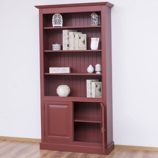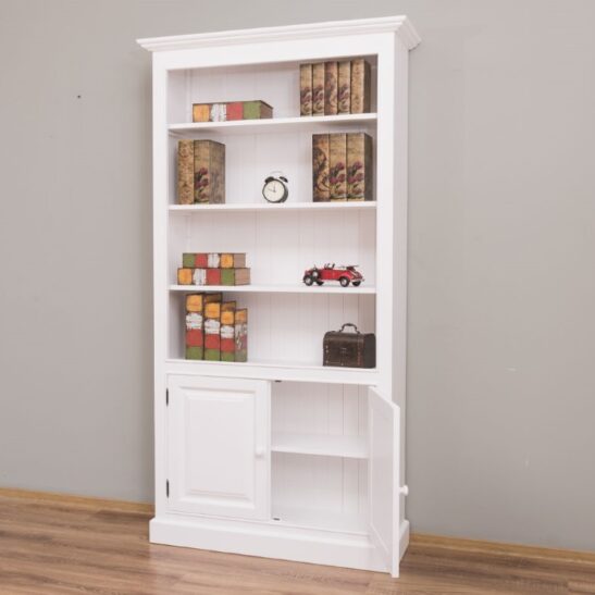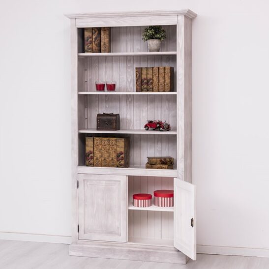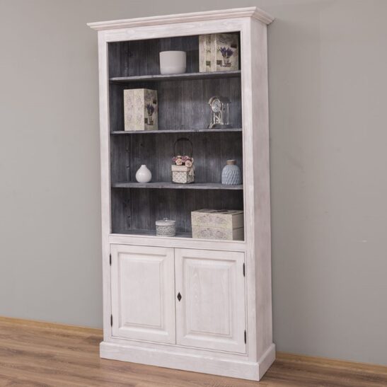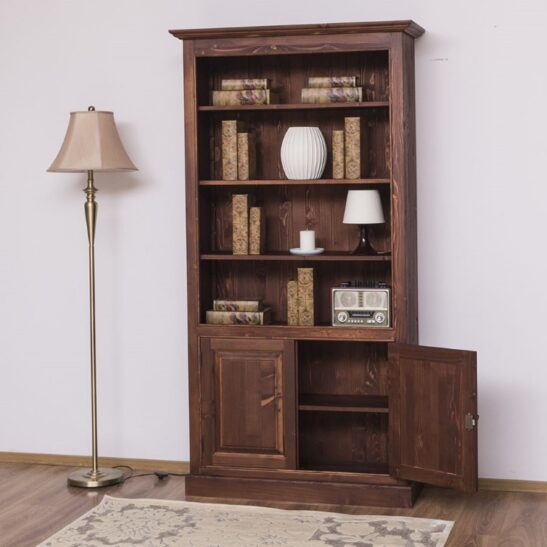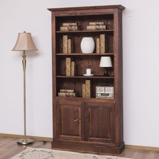 Bibliothèque en pin massif, largeur 110 cm, conçue pour allier robustesse et charme intemporel; structure en bois massif durable, étagères réglables pour organiser livres et objets décoratifs et deux portes en partie basse pour dissimuler rangements; meuble à assembler facilement, adapté au salon, bureau ou chambre, disponible avec plusieurs options de finition pour s’harmoniser avec votre décoration; parfaite pour un style campagne, vintage, elle offre une grande capacité de rangement sans encombrer l’espace grâce à son gabarit optimisé; bois issu de filières responsables, assemblages robustes et ferrures de qualité garantissent longévité et stabilité; choisissez cette bibliothèque en pin massif pour un mobilier fonctionnel, esthétique et durable qui valorise vos livres et crée une ambiance chaleureuse.
