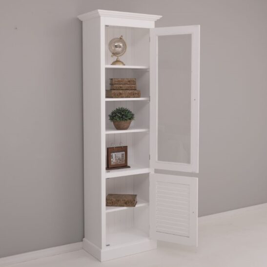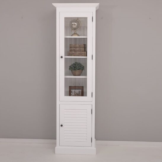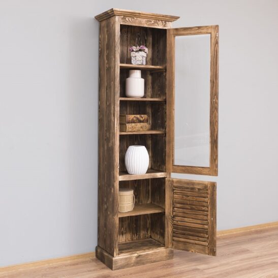 Vitrine étroite en pin massif de la collection Persienne, largeur 64 cm, pensée pour optimiser le rangement dans les espaces réduits. Sa structure en pin massif assure solidité et longévité tout en apportant la chaleur du bois naturel. Les deux portes vitrées protègent et mettent en valeur vos objets décoratifs, vaisselle ou livres tout en laissant passer la lumière. Disponible brute pour patine DIY ou à personnaliser avec les finitions proposées sur notre site, cette vitrine s’adapte à tous les intérieurs grâce à son design sobre et intemporel. Montage simple, entretien facile et finitions modulables pour créer une pièce unique qui combine praticité et esthétisme.