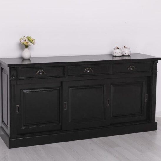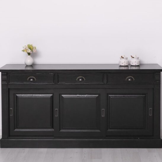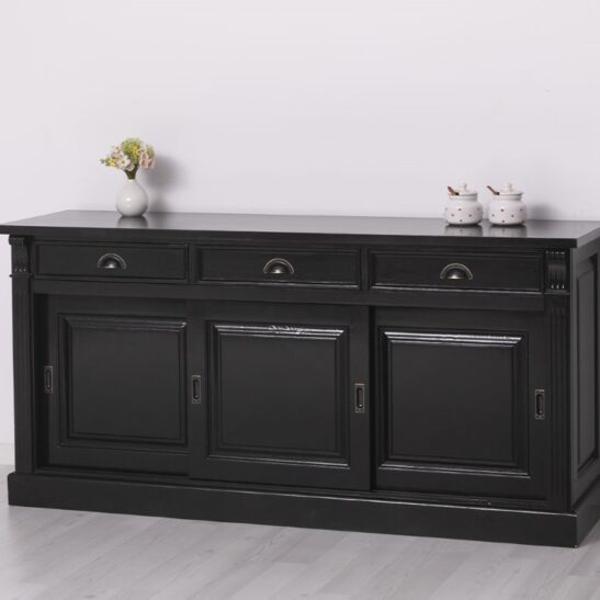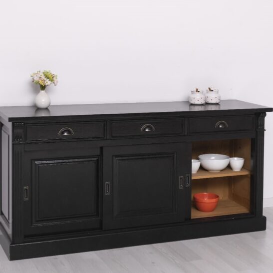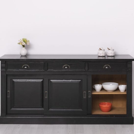Buffet bas en pin massif au style élégant et chaleureux, mesurant L176 × P51 × H85 cm, conçu pour allier robustesse, rangement et esthétisme; sa structure en pin massif offre une durabilité naturelle et des veines uniques qui évoluent avec le temps; équipé de trois portes coulissantes et de trois tiroirs spacieux, il permet d’organiser vaisselle, nappes et accessoires tout en gardant une façade épurée; l’agencement intérieur a été pensé pour une utilisation quotidienne : coulisses robustes, poignées discrètes et assemblages soignés garantissent une ouverture fluide et une longévité maximale; disponible avec plusieurs finitions proposées sur notre site pour s’adapter à tous les décors, du blanc patiné au vernis foncé, chaque option met en valeur le grain du pin tout en protégeant la surface; fabrication de qualité adaptée aux intérieurs contemporains ou rustiques, finition facile à entretenir avec des produits doux et recommandation d’entretien pour préserver la teinte et la matière; meuble livré en un seul élément ou en parties selon option logistique, montage et dimensions pensées pour une intégration simple dans la plupart des salles à manger; choix idéal pour qui cherche un meuble de rangement fonctionnel, esthétique et durable en bois massif.