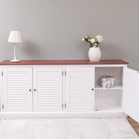 Ce grand buffet bas d’entrée en pin massif séduit par son style persienne intemporel et sa conception robuste, idéale pour un intérieur chaleureux et authentique. Fabriqué en bois massif soigneusement sélectionné, il offre une excellente durabilité tout en mettant en valeur le veinage naturel du pin. Doté de quatre portes à lames persiennées, ce meuble combine élégance et fonctionnalité. Son large espace de rangement permet d’organiser facilement vaisselle, linge de maison, chaussures ou objets du quotidien, tout en conservant une esthétique épurée. Sa largeur généreuse de 209 cm en fait un meuble structurant, parfaitement adapté à une entrée spacieuse, un séjour ou une salle à manger. Pensé pour s’intégrer dans différents univers décoratifs, ce buffet bas peut être laissé brut pour une finition naturelle ou recevoir l’une des finitions proposées afin de s’harmoniser avec votre intérieur. Son design sobre et équilibré s’inspire du mobilier traditionnel revisité avec une touche contemporaine. Ce meuble en pin massif est conçu pour traverser le temps, tant par la qualité de ses matériaux que par son style indémodable. Il constitue une solution de rangement élégante et durable pour celles et ceux qui recherchent un mobilier authentique, fonctionnel et esthétique.