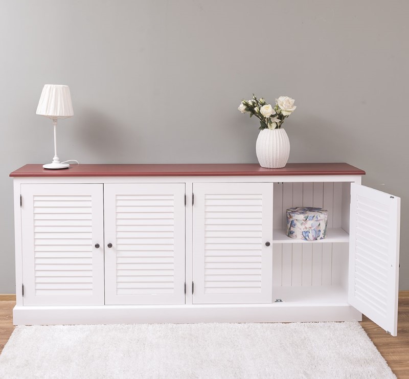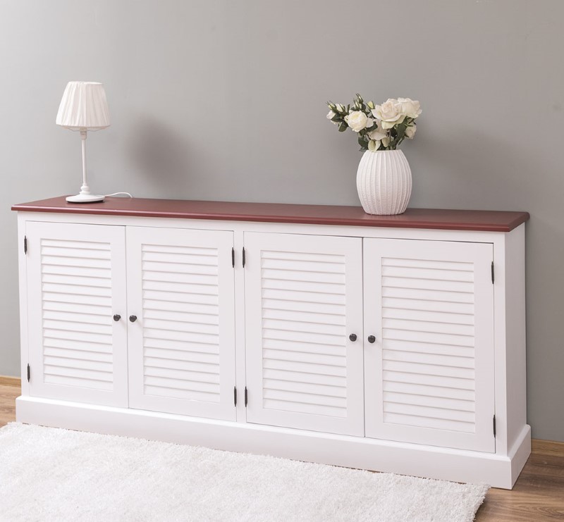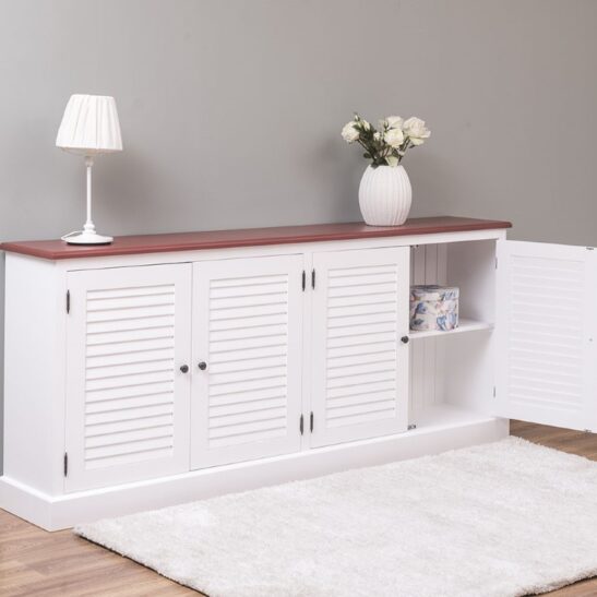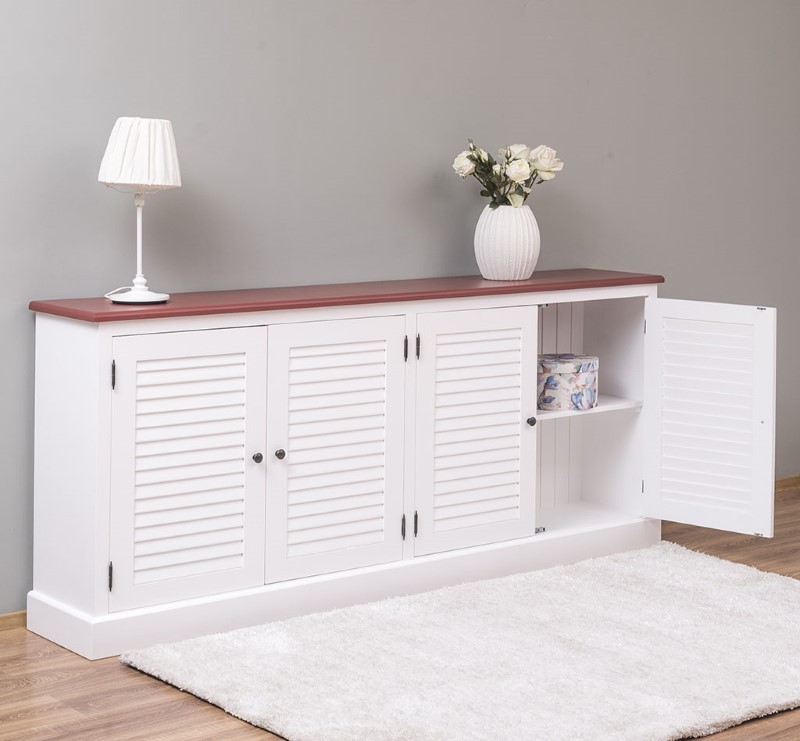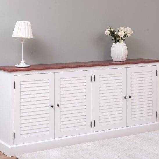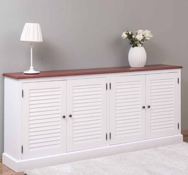 Grand buffet bas d’entrée en pin massif 4 portes – Collection Persienne