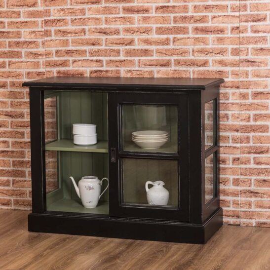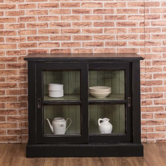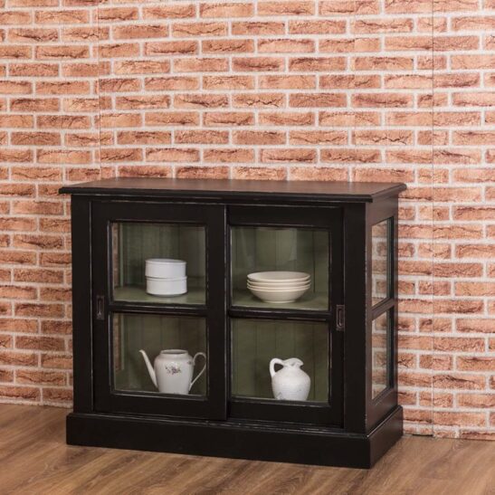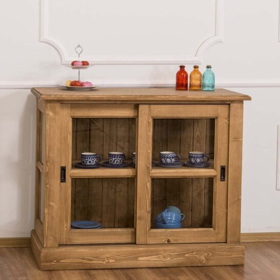 Vitrine basse 2 portes coulissantes en pin massif 106 cm