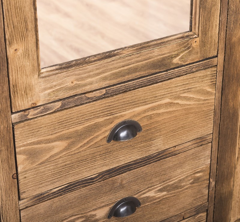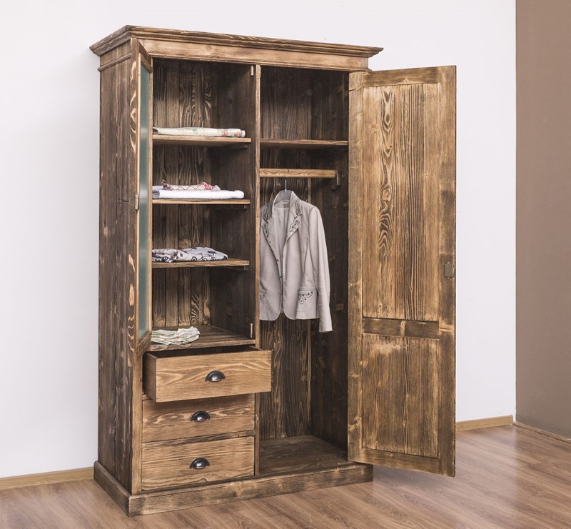 Armoire en pin massif de 121 cm de largeur, 197 cm de hauteur et 59 cm de profondeur, conçue pour allier robustesse et charme naturel dans la chambre à coucher ; elle offre un grand volume de rangement avec une porte équipée d’un miroir et une seconde porte ouvrant sur des étagères pratiques, tandis qu’un espace penderie avec tringle permet de suspendre manteaux et chemises ; trois tiroirs situés sous le compartiment miroir accueillent sous‑vêtements et vêtements pliés ; fabriquée en pin massif, cette armoire accepte plusieurs options de finitions disponibles sur notre site pour s’adapter à votre décoration ; finitions soignées et possibilité d’aménagements sur demande.