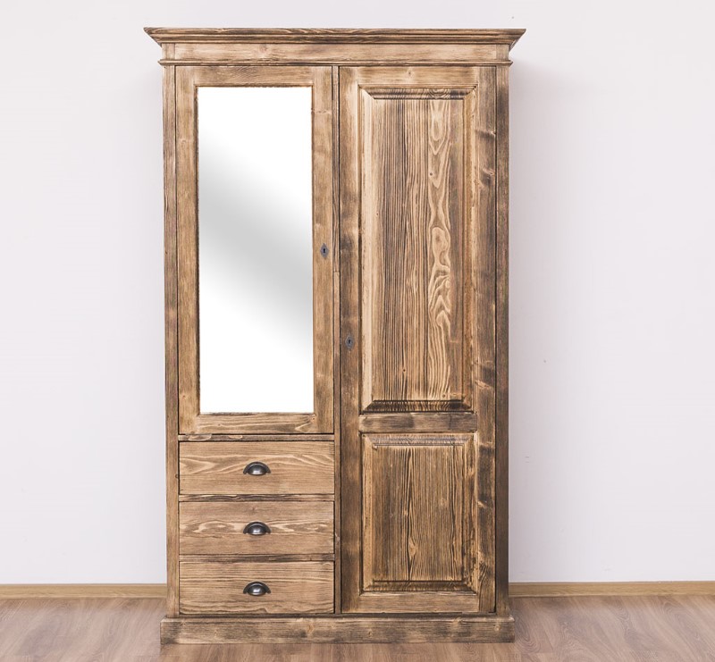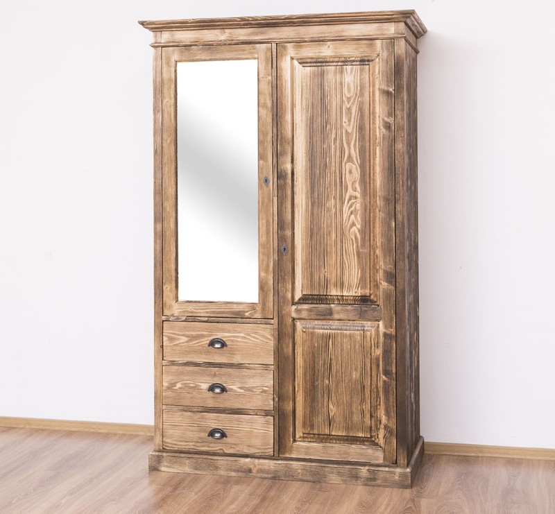 Armoire 2 portes pin massif 121 cm avec miroir