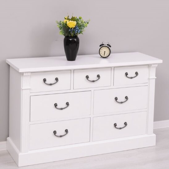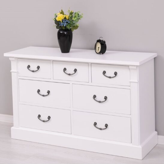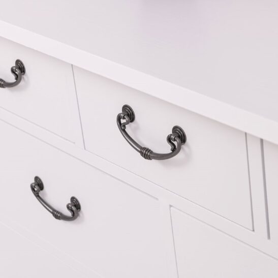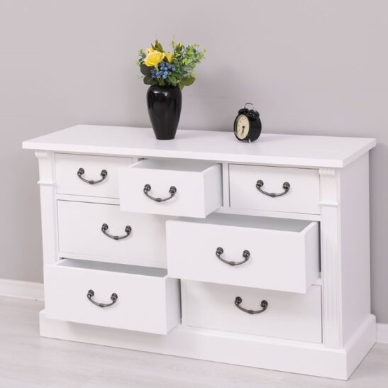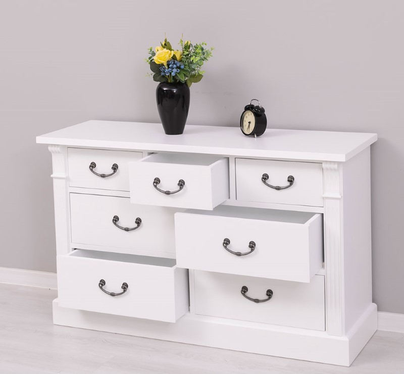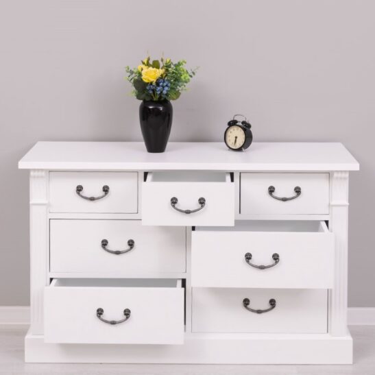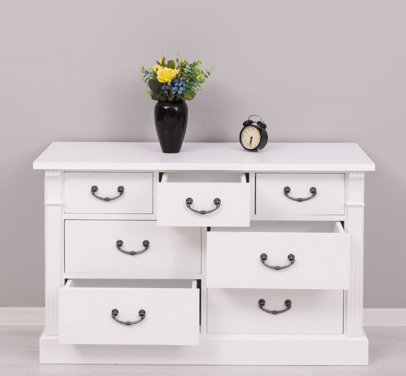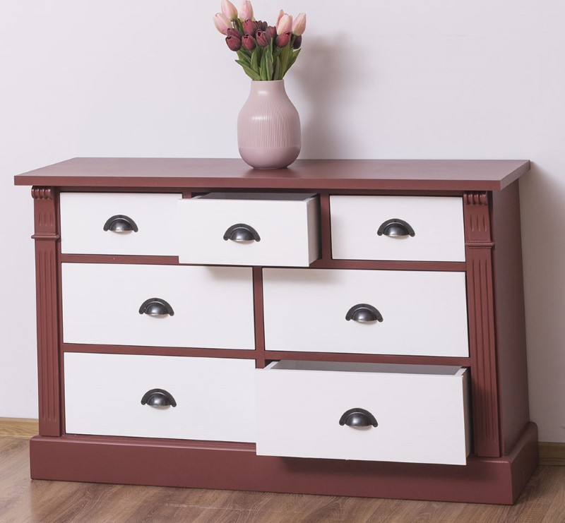 Commode apothicaire en pin massif 122 cm, 7 tiroirs, conçue pour allier esthétique vintage et solidité durable. Fabriquée en pin massif de qualité, cette commode offre une structure stable, un plateau résistant et des tiroirs spacieux équipés de glissières fiables pour un usage quotidien. Son design s’inspire des meubles d’apothicaire traditionnels, apportant une touche chaleureuse et authentique à la chambre, l’entrée ou le salon. Les finitions sont disponibles sur notre site pour s’adapter à votre intérieur ou vous pouvez la personnaliser vous-même selon vos envies. Entretien simple : dépoussiérage régulier et nettoyage doux avec un chiffon humide; éviter les produits agressifs pour préserver le bois. Dimensions optimisées pour le rangement tout en restant compacte, cette commode est idéale pour le linge, les accessoires et les objets décoratifs. Commandez un meuble durable, fonctionnel et élégant, livré selon nos conditions et garanti pour une utilisation sereine.