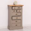 La commode étroite vintage LM448 à trois tiroirs rappelle les temps passés avec son design cosy et vieilli. La commode est particulièrement élégante grâce aux pieds parfaitement tournées. Grâce à sa faible largeur et profondeur, la commode LM448 peut facilement être placée n'importe où dans la maison. Néanmoins, trois tiroirs à façade arbalète offrent suffisamment d'espace de rangement. En combinaison avec des meubles anciens, elle est particulièrement attrayante et élégante. Même avec des meubles modernes ou seule, la commode impressionne par son aspect noble et cosy dans chaque salon. Grâce à un large choix de couleurs, la commode LM448 peut être combinée de manière optimale avec les autres meubles de Lokimob et vous offre la possibilité de créer votre propre style individuel.