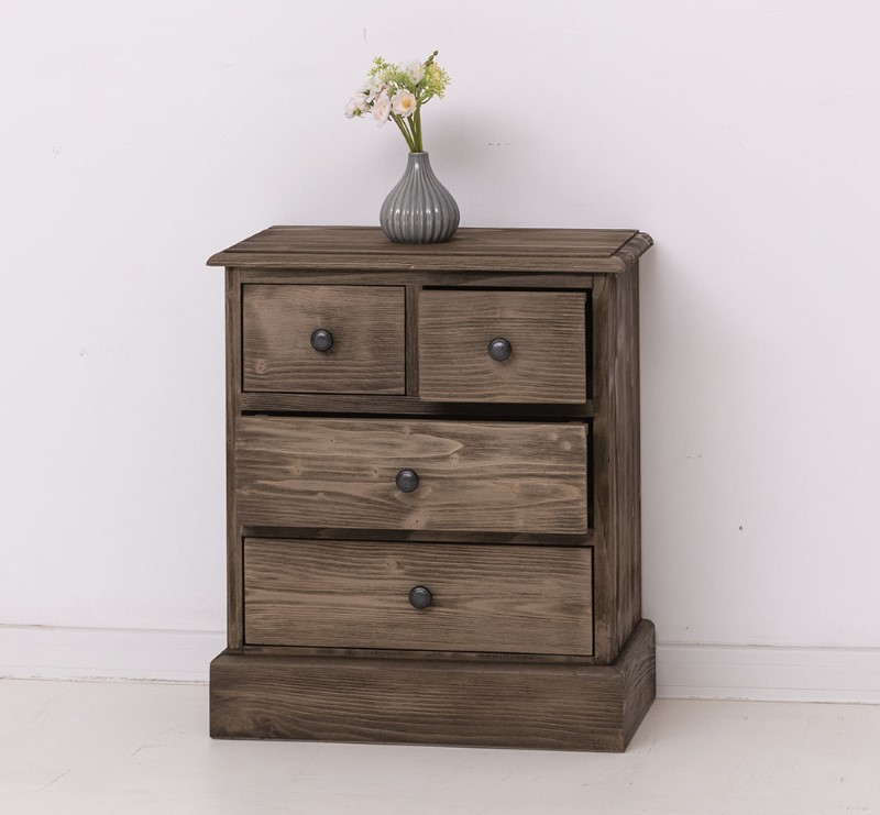 Table de nuit 4 tiroirs en pin massif — Largeur 51 cm