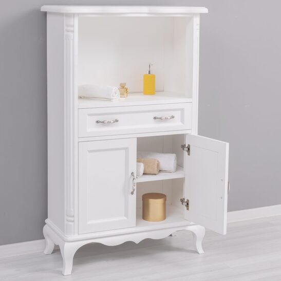 Pensée pour s’intégrer harmonieusement dans différents styles d’intérieurs, cette armoire de salle de bain baroque en pin massif est un choix idéal pour celles et ceux qui recherchent un meuble à la fois esthétique, durable et authentique.