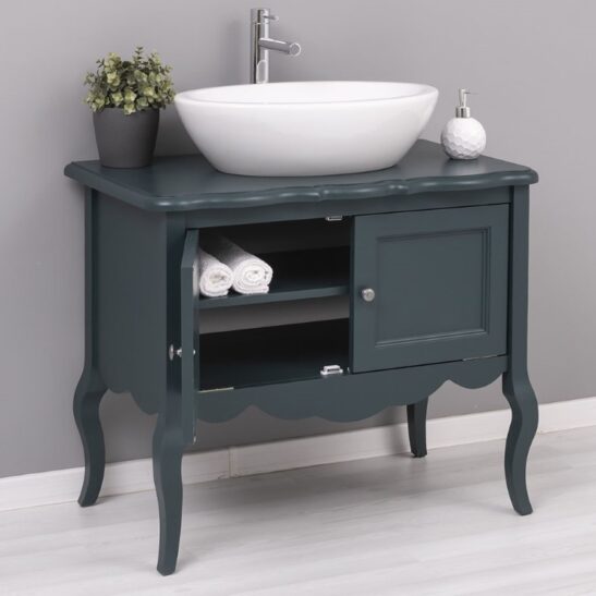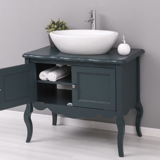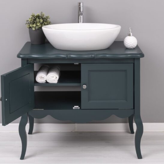 Son design baroque revisité associe lignes élégantes, proportions équilibrées et détails subtils, permettant une intégration harmonieuse aussi bien dans une salle de bain classique que dans un intérieur plus contemporain. Chaque meuble est pensé pour valoriser la vasque à poser et structurer l’espace avec caractère.