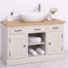 Avec ses dimensions idéales de 120 cm de largeur, ce meuble sous vasque en pin massif constitue un choix durable et esthétique pour valoriser votre salle de bain avec un mobilier de caractère.
