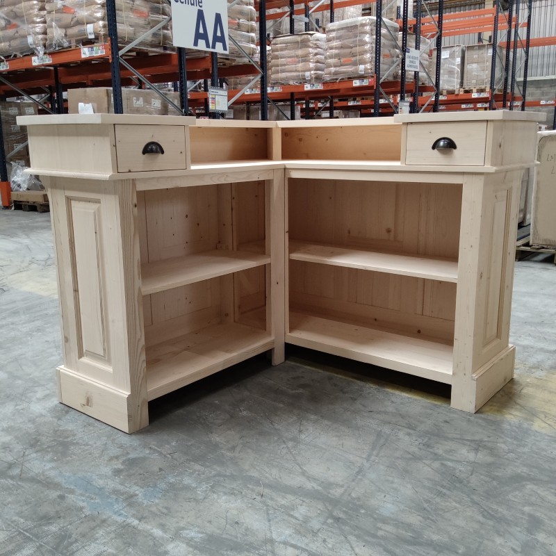 GLASGOW Comptoir vintage en L en pin massif naturel brut