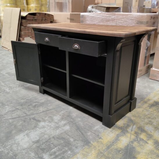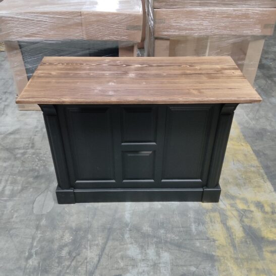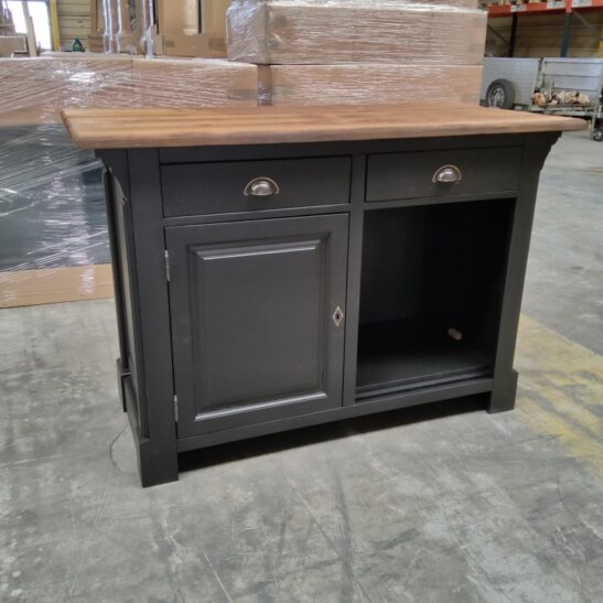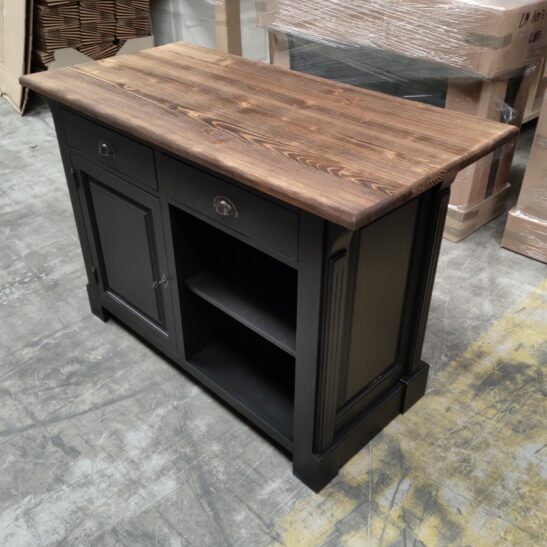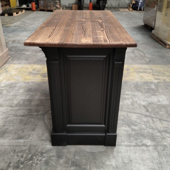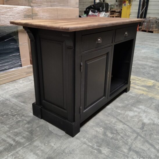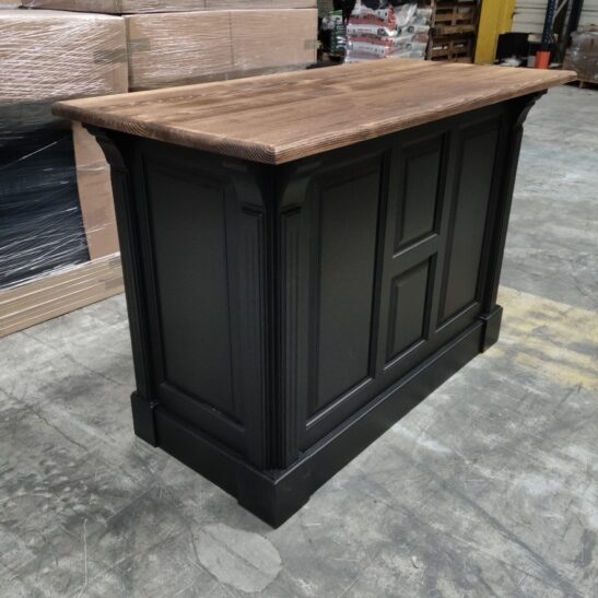 BRISTOL Comptoir îlot 140 cm Vintage en Pin Massif Noir et Plateau Bois Cendré