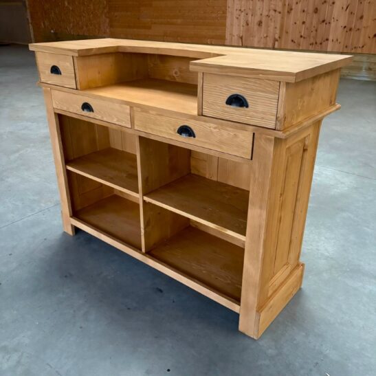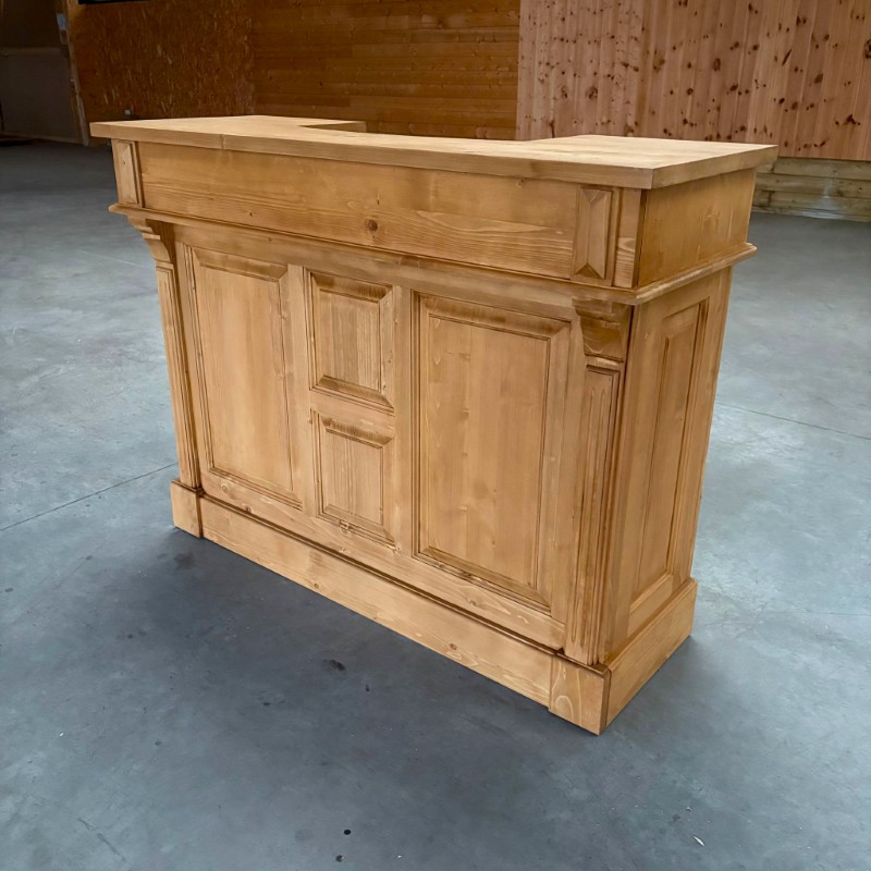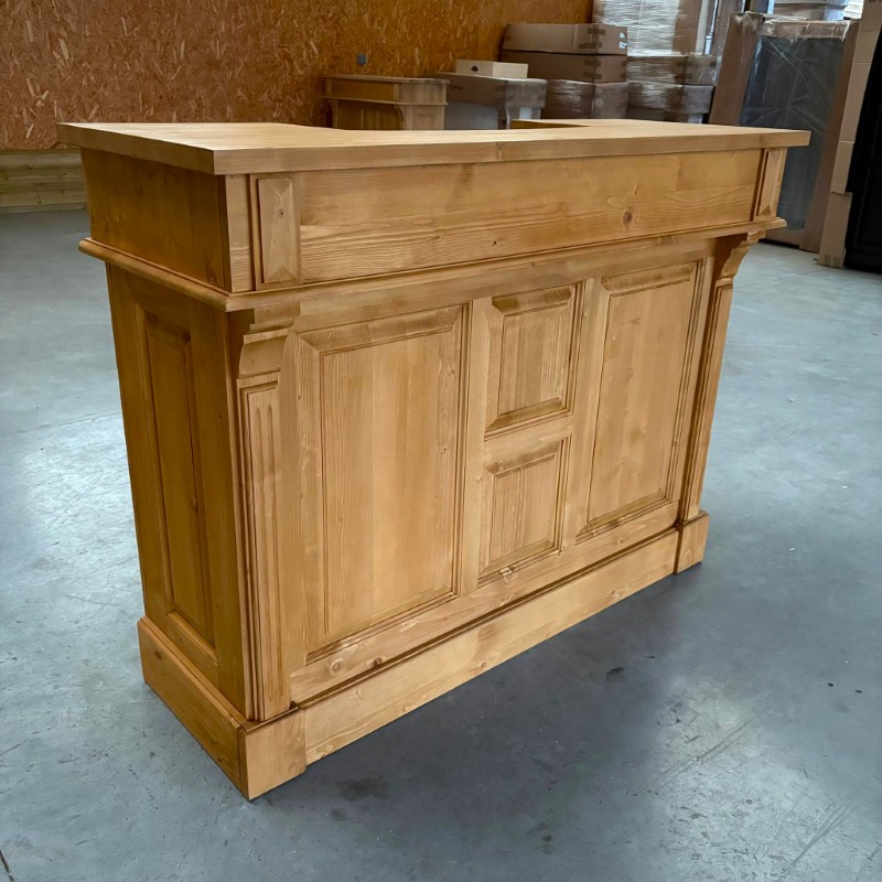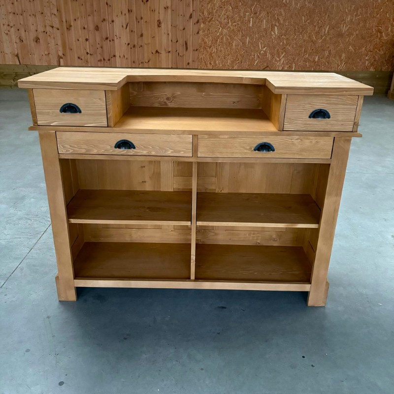 EVERTON Comptoir 140 cm Vintage en Pin Massif Ciré Brun Clair