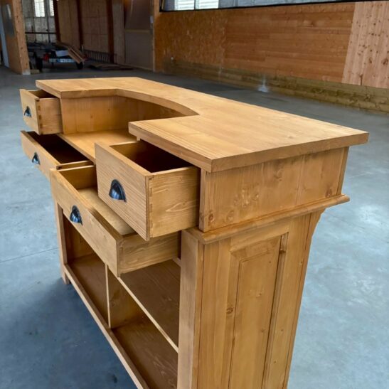 Offrez un esprit authentique à votre espace avec le comptoir Vintage Everton. Composé de pin massif de 140 cm, sa finition cirée brun clair sublime la texture naturelle du bois. Son design épuré et ses lignes rétro s’intègrent aussi bien dans un bar, une boutique ou une cuisine. La solidité du pin massif garantit une durabilité sur le long terme, tandis que la cire protège et enrichit la teinte. Chaque détail a été pensé pour allier fonctionnalité et esthétique. L’armature robuste supporte charges et serviteurs, idéal pour un accueil professionnel ou un comptoir de bar. Les finitions artisanales apportent une patine unique et chaleureuse, invitant à la convivialité. Facile à entretenir, il se nettoie d’un simple coup d’éponge humide sans altérer la cire. Avec ses 140 cm de largeur, ce comptoir sur mesure s’adapte à tous les projets d’aménagement. Il s’installe en quelques minutes et offre un espace de travail ou de présentation optimisé. Adoptez le charme vintage Everton pour transformer votre intérieur et créer un point focal remarquable. Commandez dès maintenant pour profiter d’une pièce au caractère authentique.