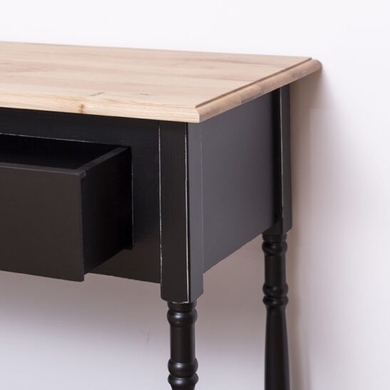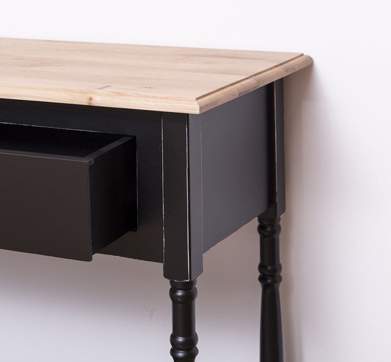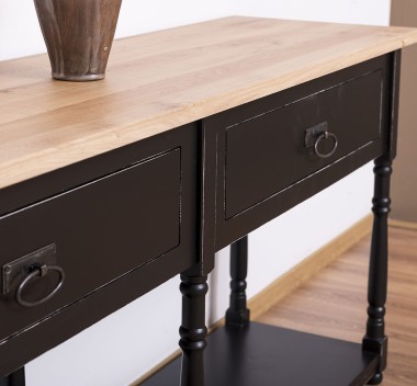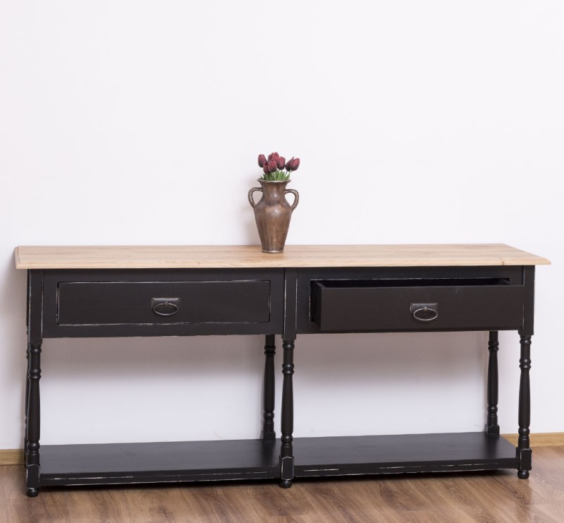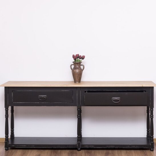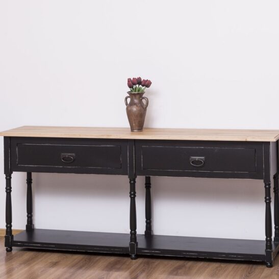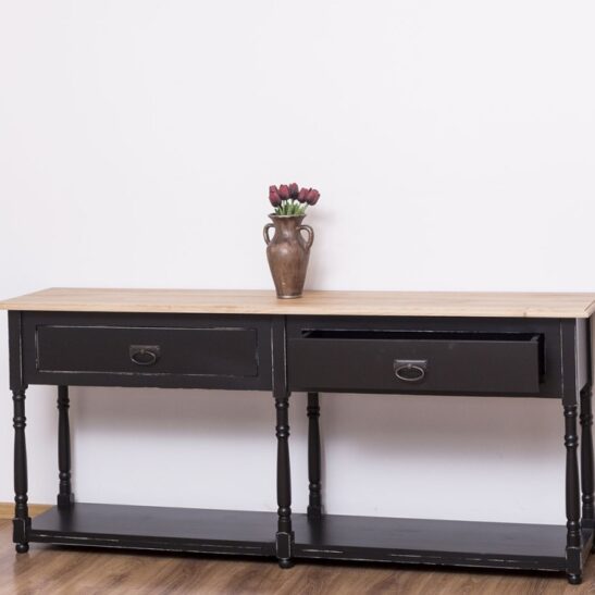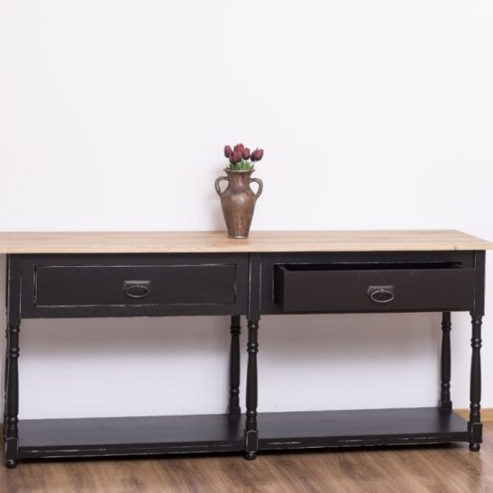 La grande console de 180 cm allie charme et fonctionnalité. Son piètement en pin massif garantit solidité et authenticité tandis que le plateau en chêne massif sublime le grain naturel du bois pour une élégance intemporelle. Conçue pour s’intégrer harmonieusement dans l’entrée, le salon ou la salle à manger, cette console offre deux vastes tiroirs pour organiser vos essentiels du quotidien. Sa structure robuste supporte vos objets déco les plus lourds, bougies, livres et plantes, tout en conservant une légèreté visuelle grâce à ses pieds finement tournés. Vous pouvez personnaliser chaque détail : ponçage, teinte, finition vernie ou huilée, laissez libre cours à votre créativité ou confiez-nous la réalisation pour un rendu sur-mesure. Que vous soyez adepte du style brut, scandinave, industriel ou rustique, cette console deviendra le point d’ancrage de votre décoration, alliant praticité et esthétique. Fabriquée en atelier européen, elle reflète un savoir-faire artisanal et respectueux de l’environnement, avec des bois issus de forêts gérées durablement. Une invitation à personnaliser votre intérieur avec un meuble unique, pensé pour durer.