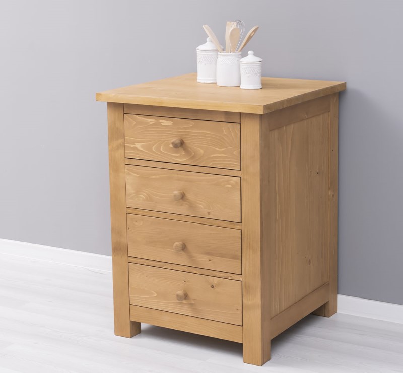 Meuble bas de cuisine 4 tiroirs en pin massif 67 cm