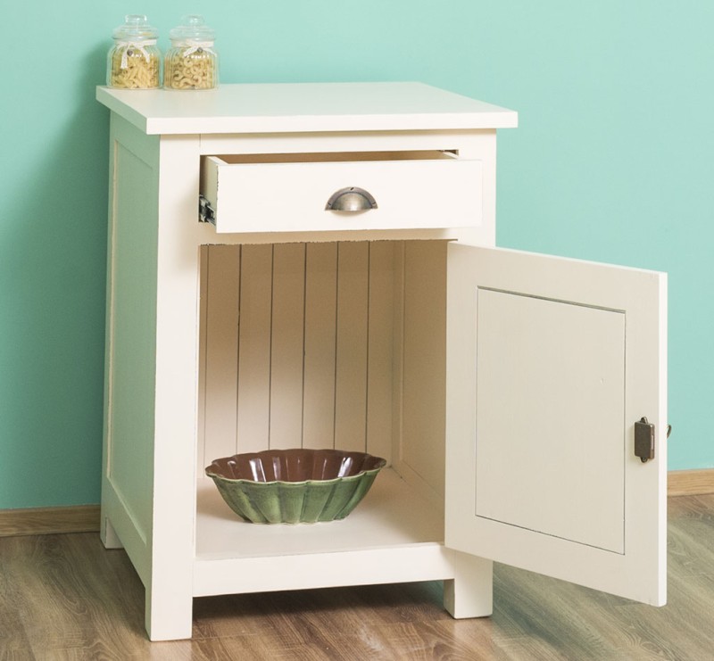 Meuble bas de cuisine 67 cm en pin massif, 1 porte 1 tiroir