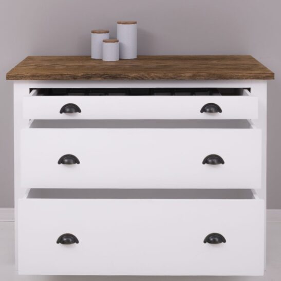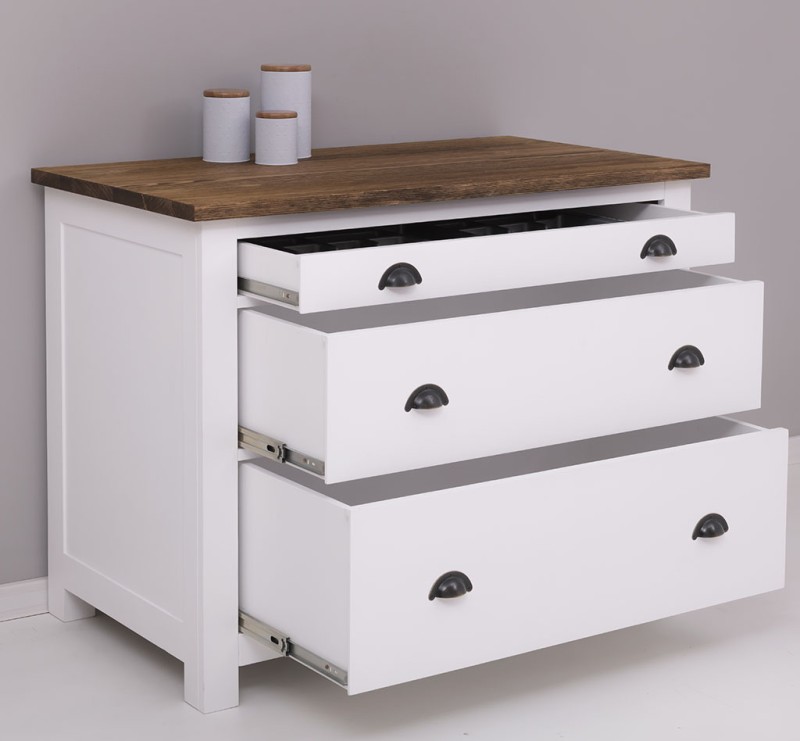 Meuble casserolier en pin massif avec range‑couverts intégré