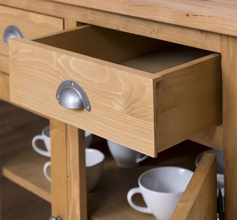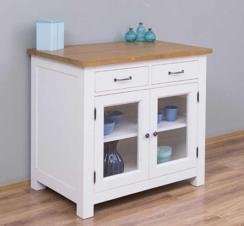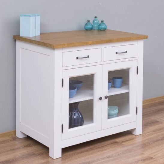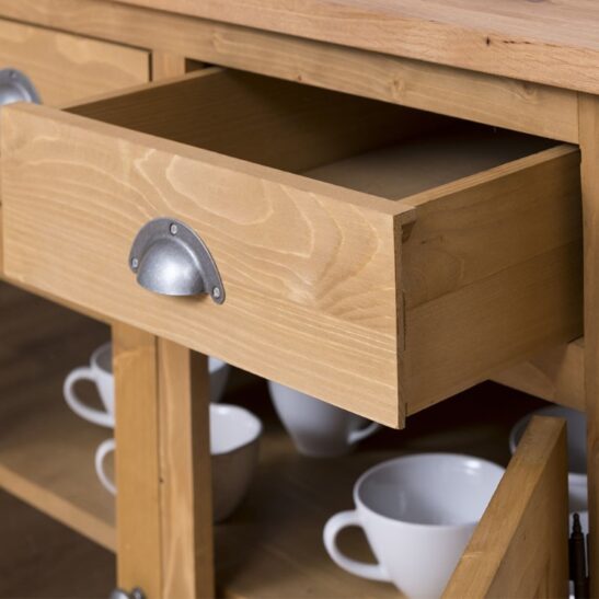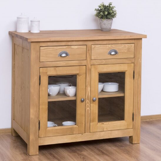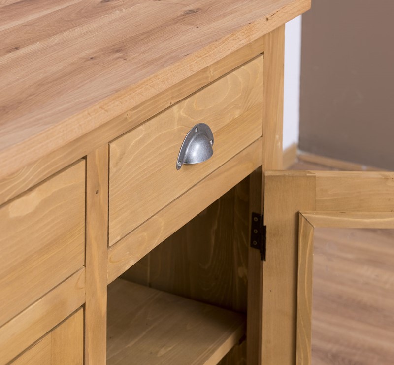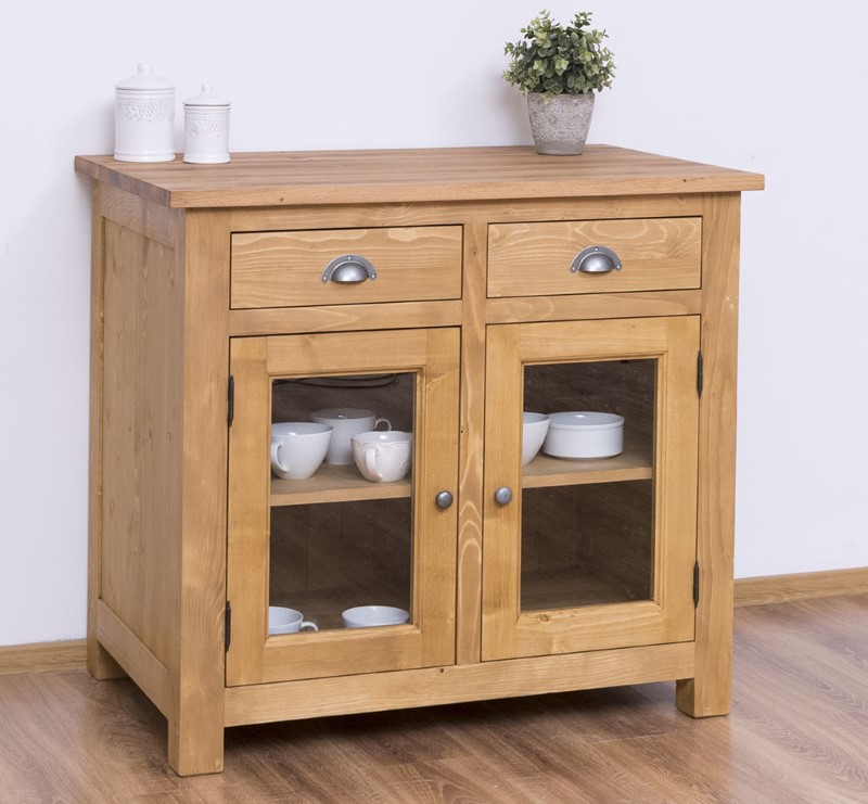 Module de cuisine en pin massif avec portes vitrées et tiroirs