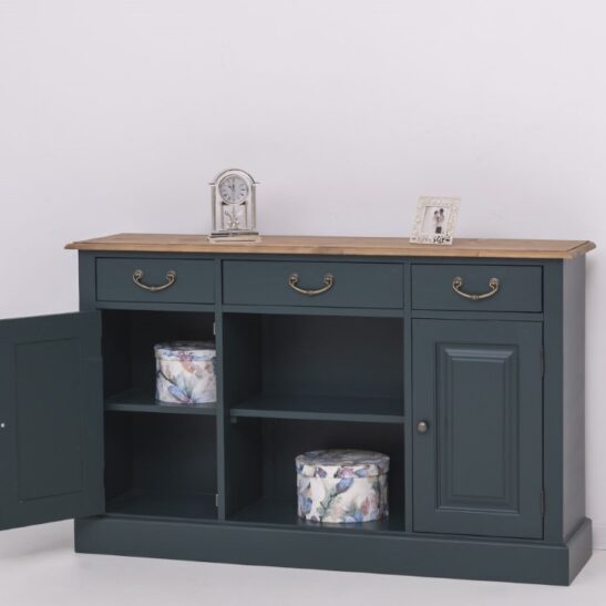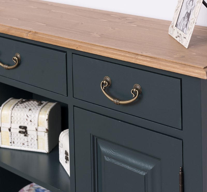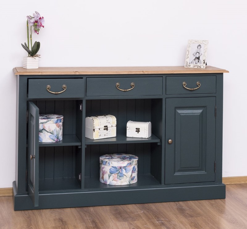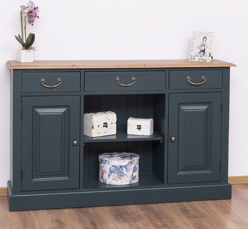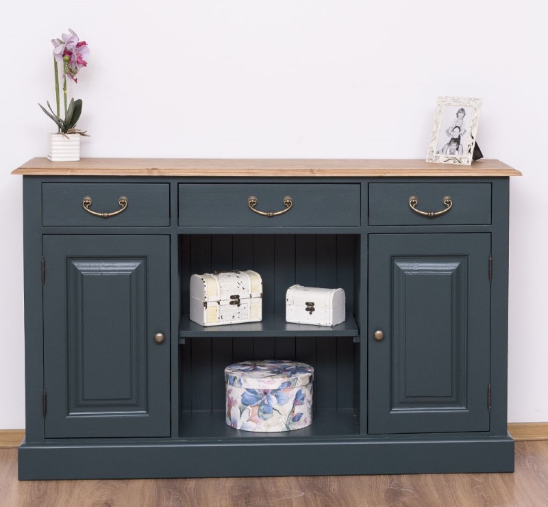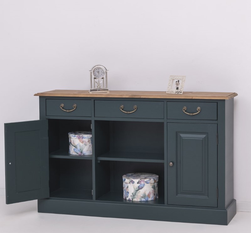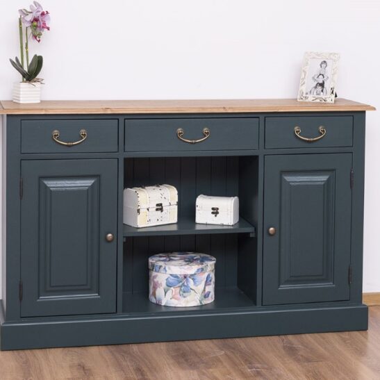 Buffet d’entrée en pin massif 139 cm, 2 portes 3 tiroirs