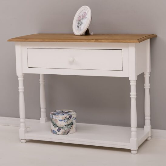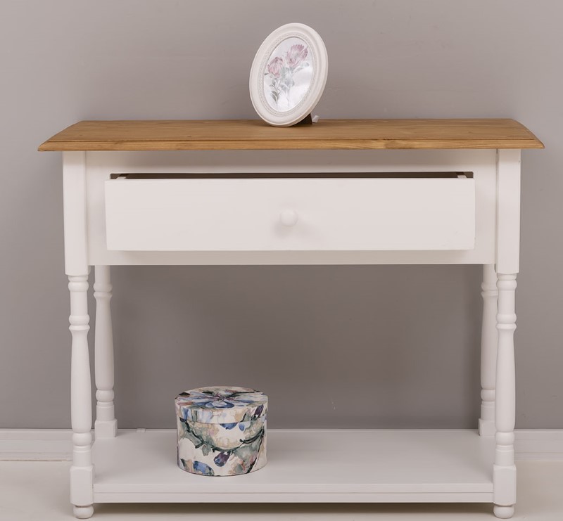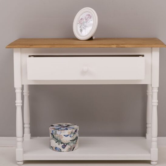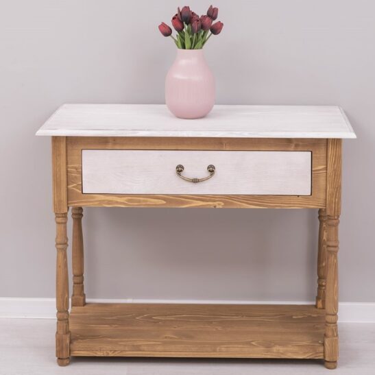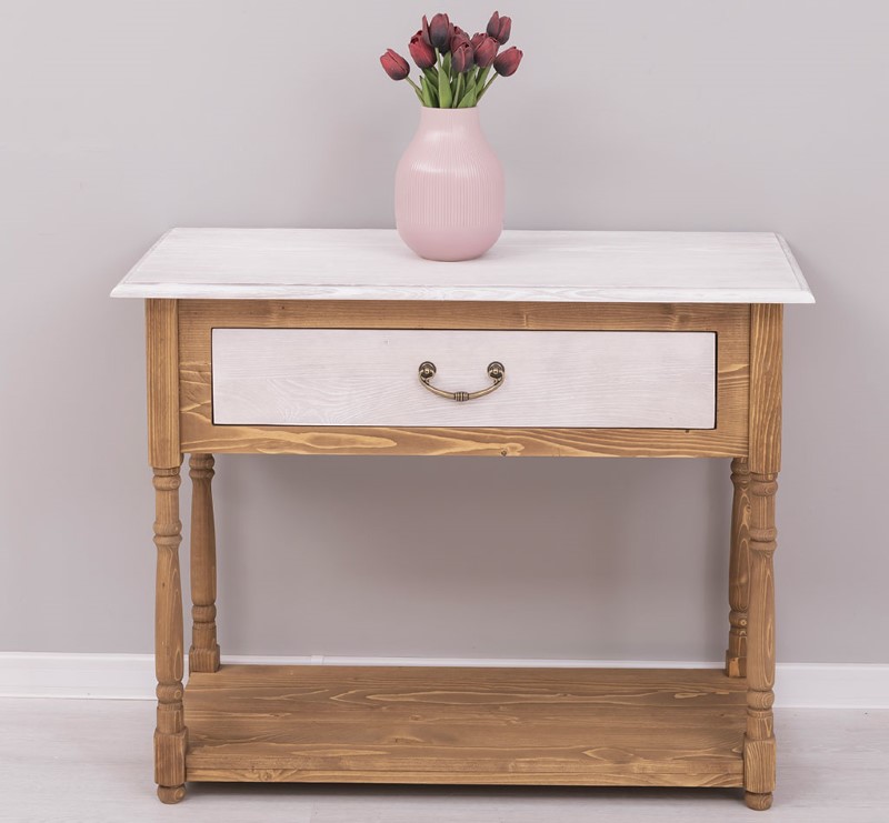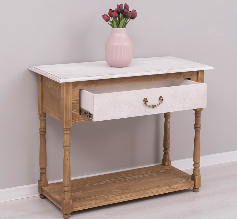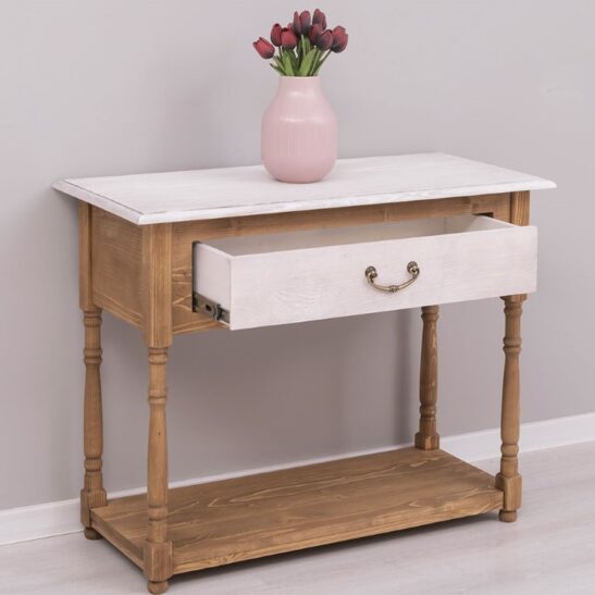 Console en pin massif de 96 cm, conçue pour apporter chaleur et solidité à la salle de bain ou comme meuble d’appoint dans une entrée ou un couloir. Ce meuble étroit offre un tiroir spacieux pour ranger serviettes et accessoires, une structure en bois massif pour une durabilité optimale et des assemblages soignés garantissant stabilité et résistance à l’usage quotidien. Sa silhouette sobre s’adapte aux intérieurs contemporains comme aux décors plus traditionnels. Proposée sans finition imposée, elle peut être laissée brute ou traitée selon vos préférences : vernis, cire, peinture ou huile, appliqués par nos soins ou à réaliser soi‑même. Entretien simple : dépoussiérer et nettoyer avec un chiffon légèrement humide, éviter les produits agressifs. Livraison soignée avec options de montage partiel ou complet et fiche technique détaillée disponible sur la page produit pour faciliter le choix et l’installation.