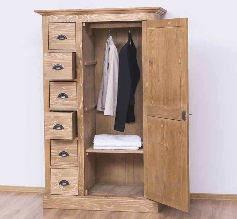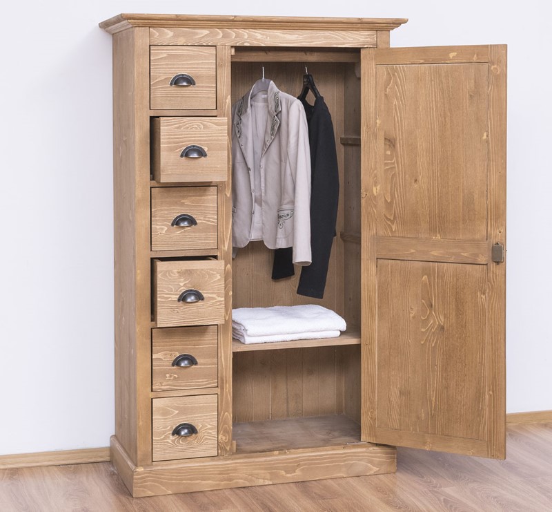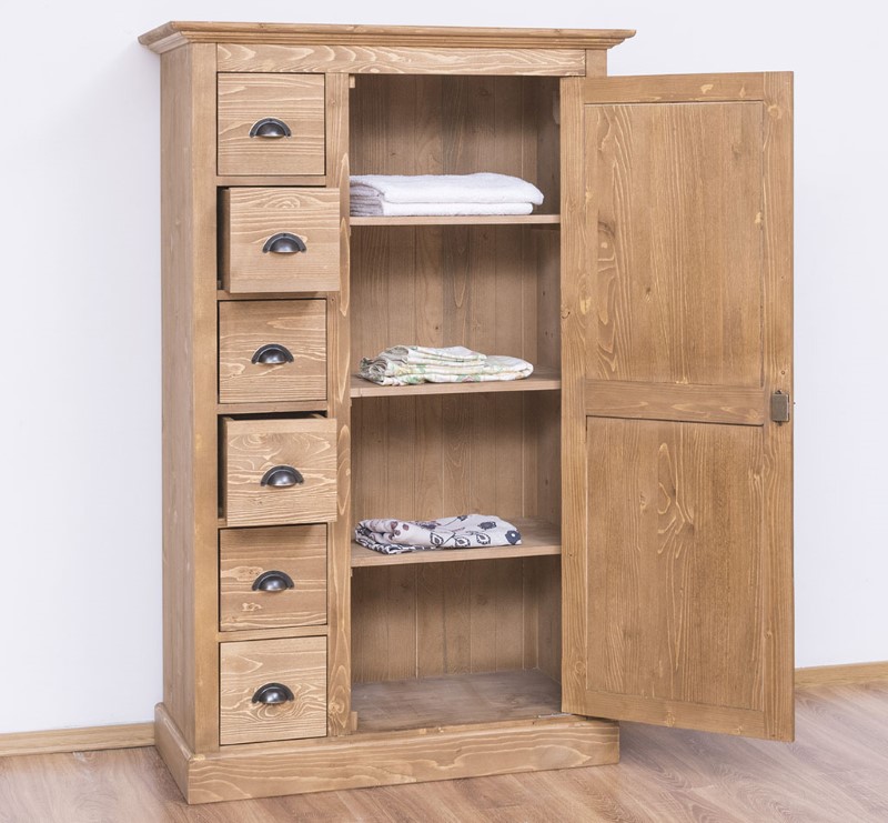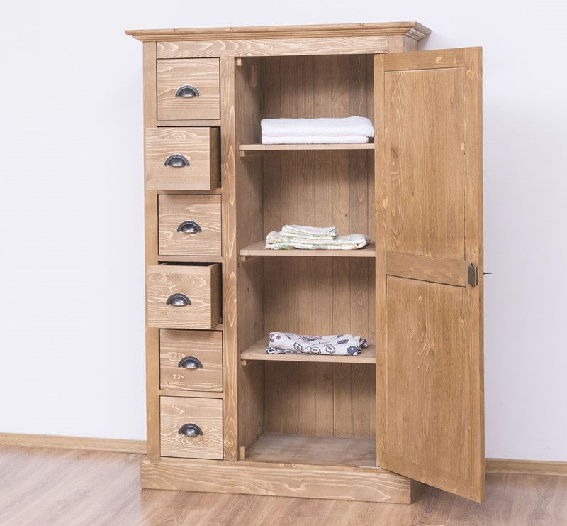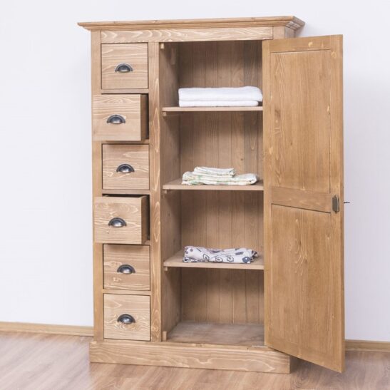 farinier en pin massif 1 porte 6 tiroirs – 101 cm