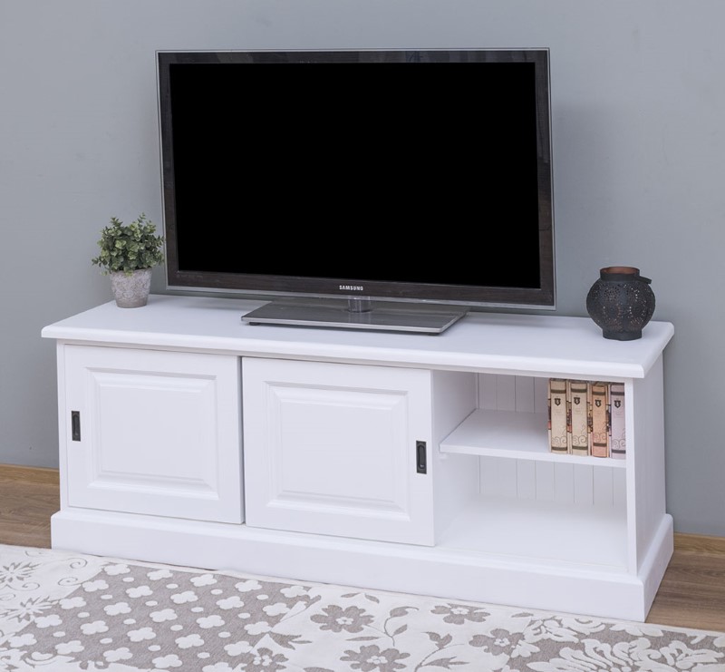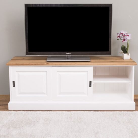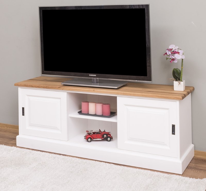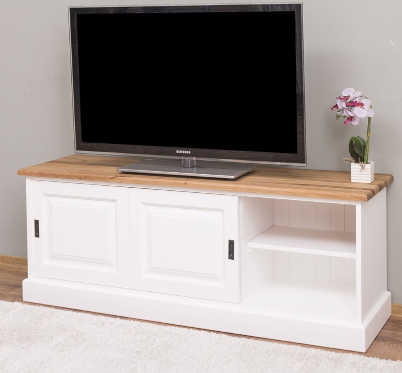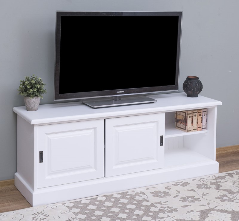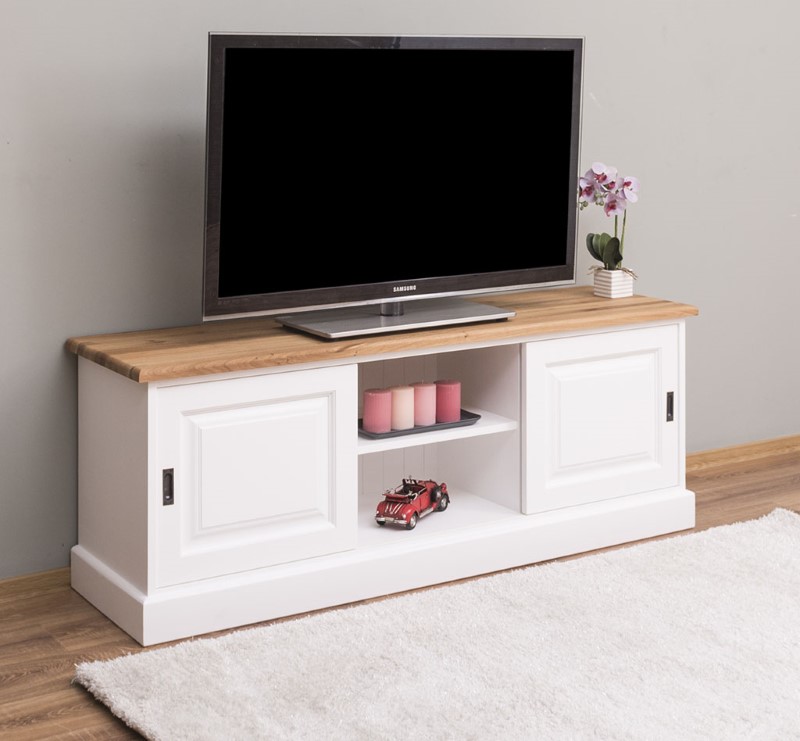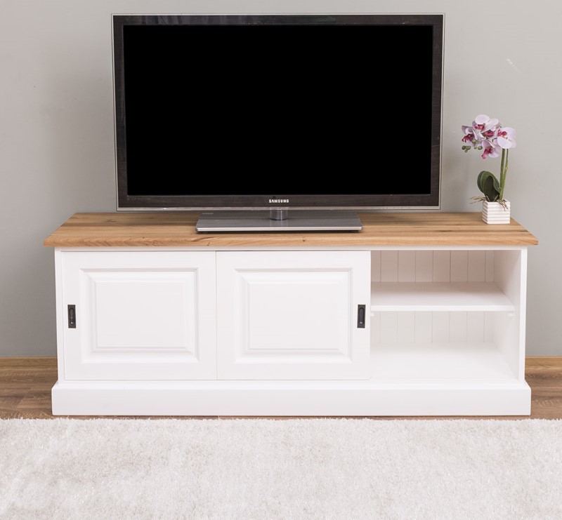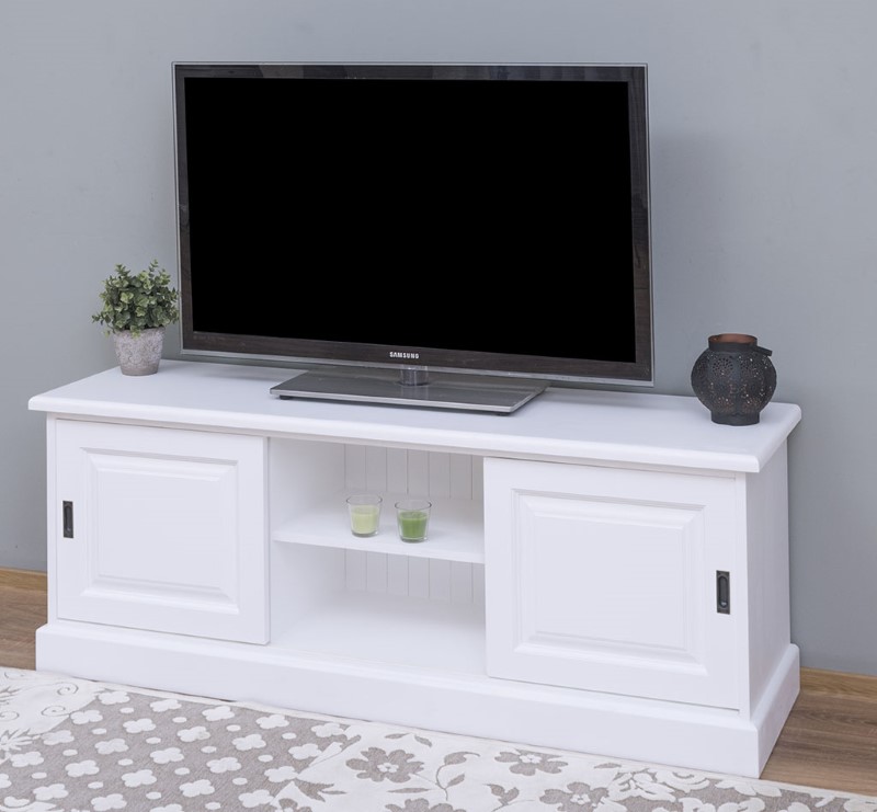 Meuble TV pin massif 160 cm, 2 portes coulissantes