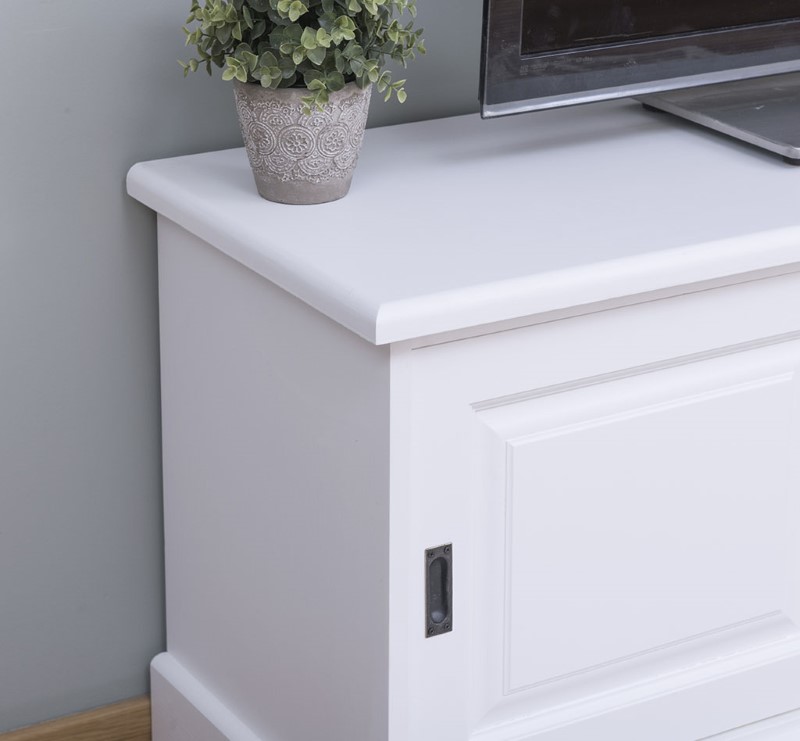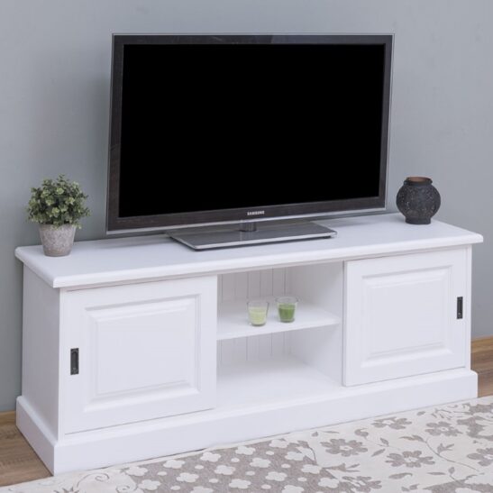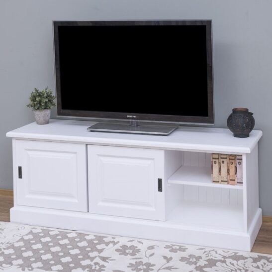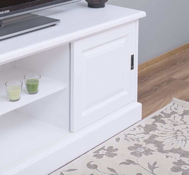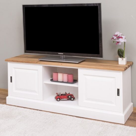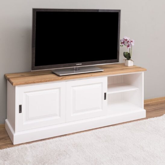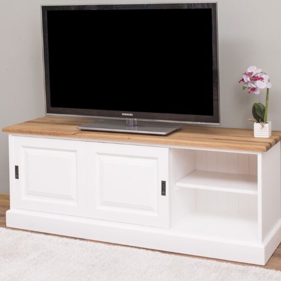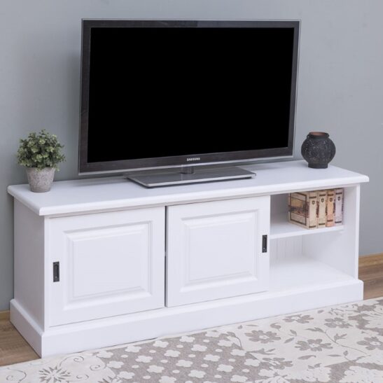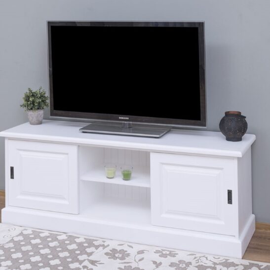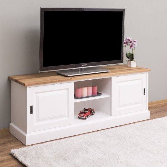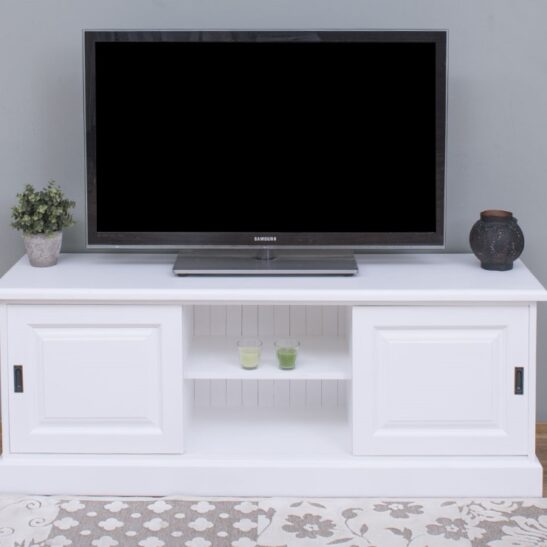 Meuble TV pin massif 160 cm, 2 portes coulissantes