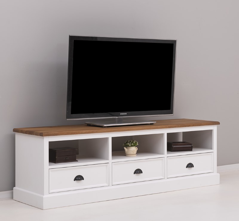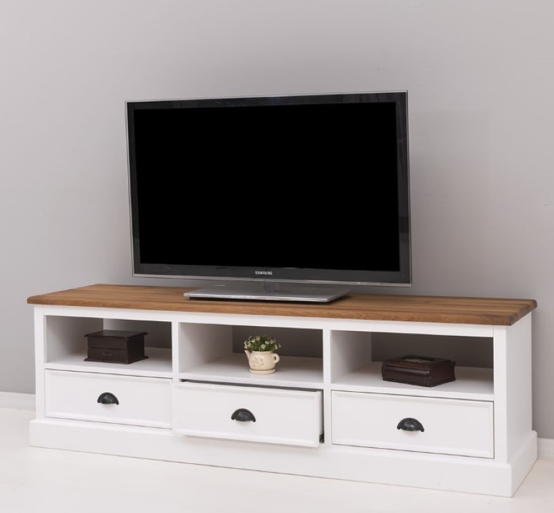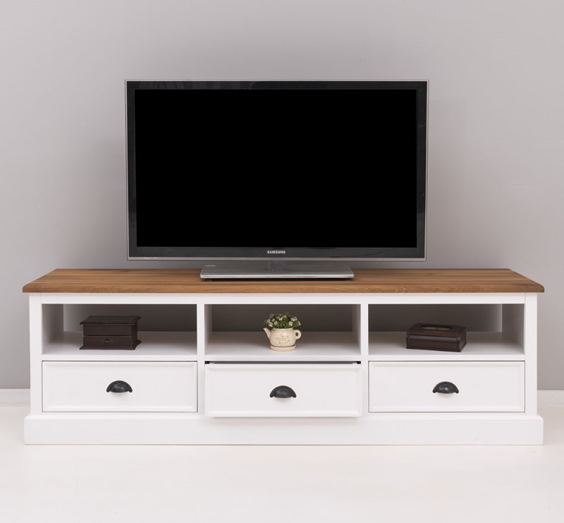 Meuble TV pin massif 180 cm, 3 tiroirs