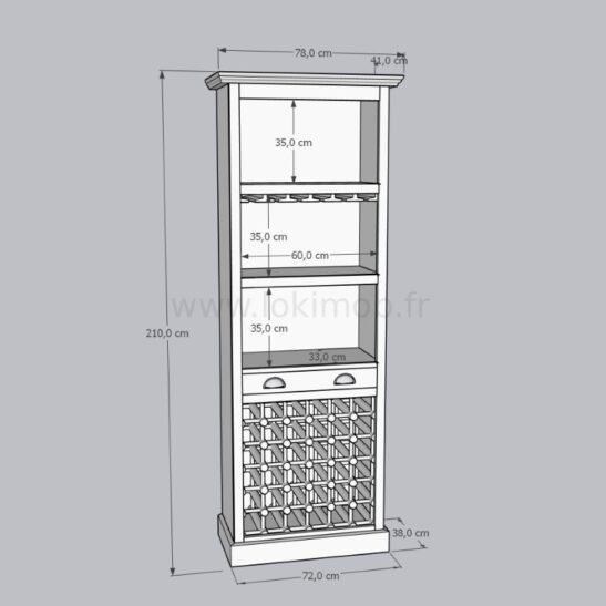 Casier à Vin 78 cm en Pin Massif Brut pour Bar