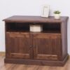 Meuble tv en pin massif gris nuageux plateau couleur bronco à deux portes avec fermeture à crémone en applique Largeur 160cm
