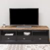 Notre meuble TV en bois massif mesure fièrement 200 cm de long et offre beaucoup d'espace de rangement pour les téléviseurs, les collections de films et les accessoires techniques.