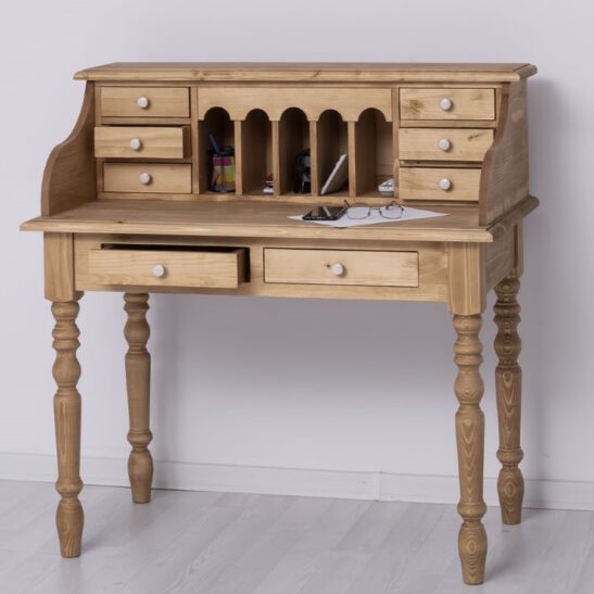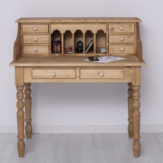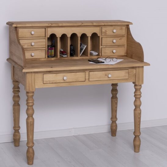 Bureau bonheur du jour en pin massif avec rangements élégants