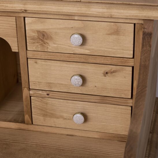 Grâce à sa fabrication en pin massif, ce bureau offre une excellente durabilité et un rendu naturel qui s’adapte à tous les styles d’intérieur. Il peut être réalisé en bois brut ou dans l’une des finitions proposées, afin de s’intégrer harmonieusement à votre ambiance. Polyvalent, il peut également être utilisé comme coiffeuse, table d’appoint ou petit secrétaire pour les espaces réduits.