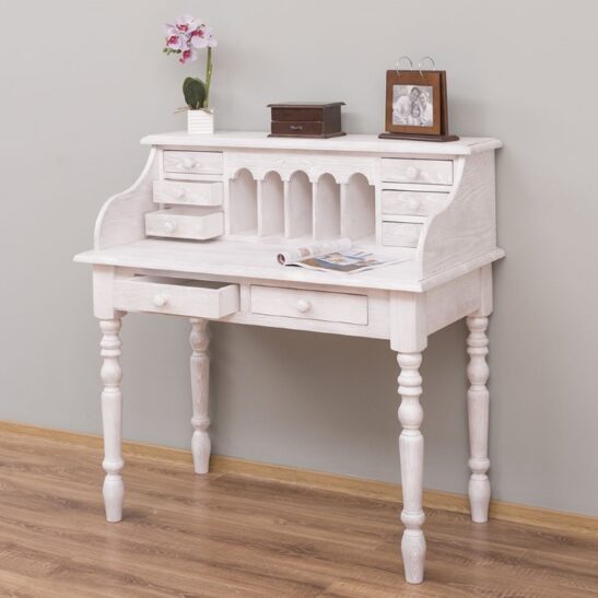 Bureau bonheur du jour en pin massif avec rangements élégants