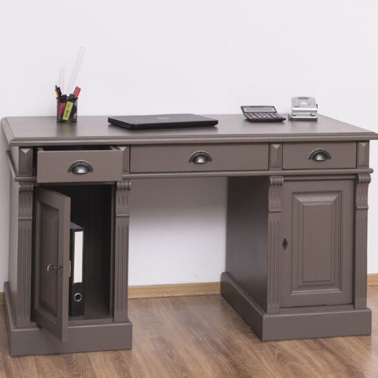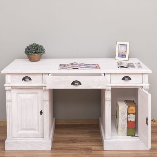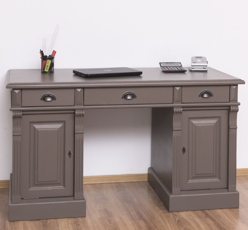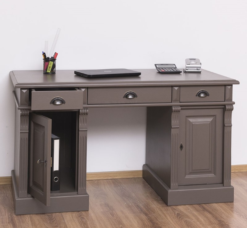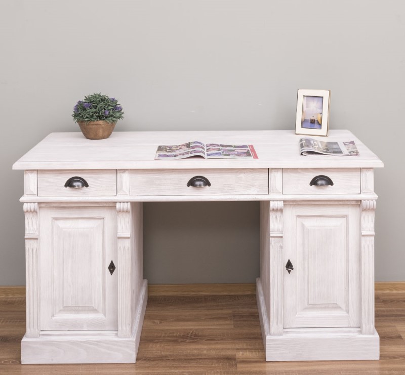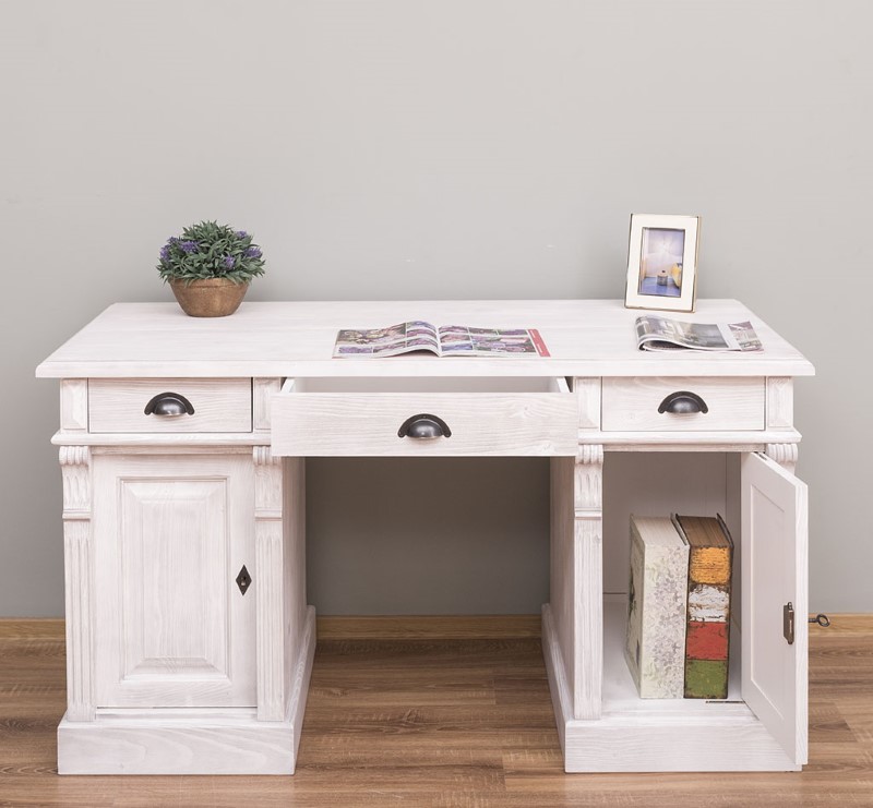 Bureau en pin massif 140 cm à caissons trois tiroirs