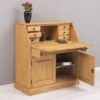 Le corps du meuble de droite est constitué d'un tiroir, idéal pour ranger la papeterie. En dessous se trouve un placard offrant suffisamment d'espace pour les fichiers et les dossiers. Les tiroirs s'ouvrent facilement à l'aide d'une poignée coquille en laiton. De plus, une plaque coulissante est fixée sous la surface d'écriture pour créer un emplacement confortable pour un clavier.
