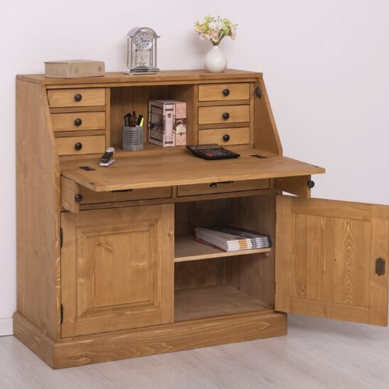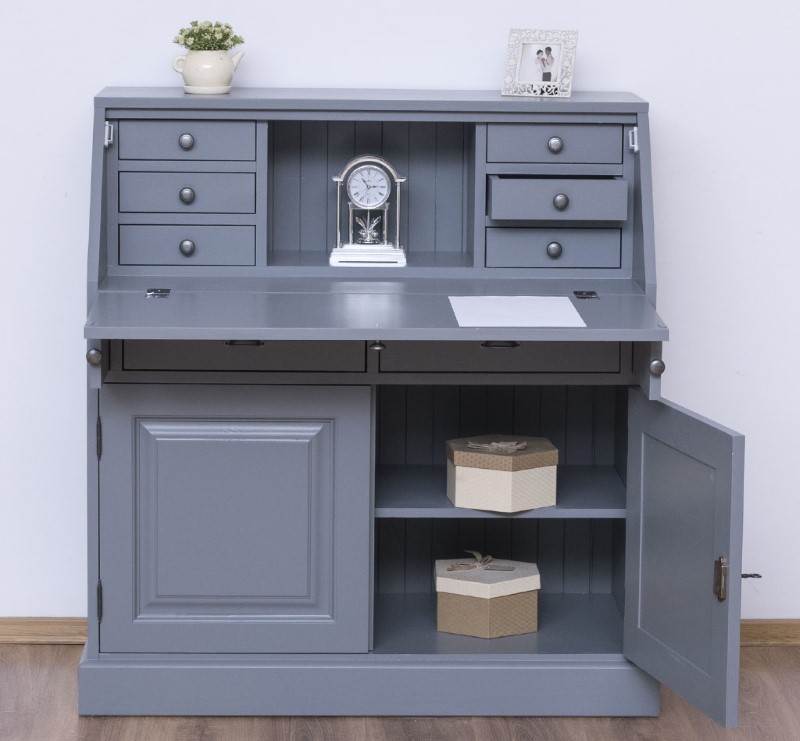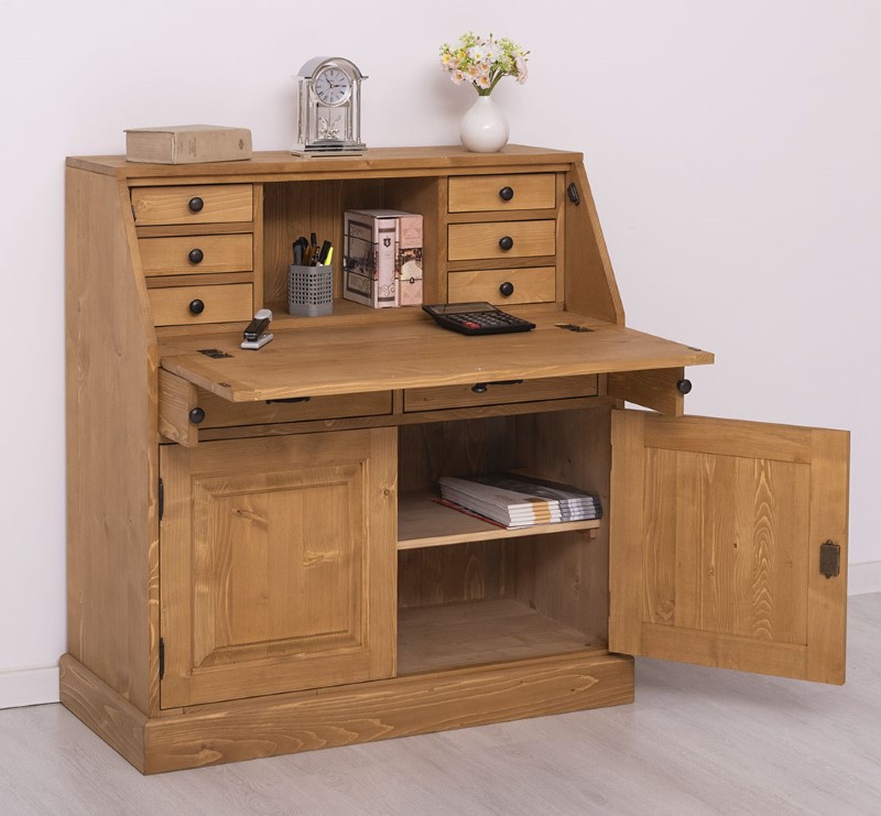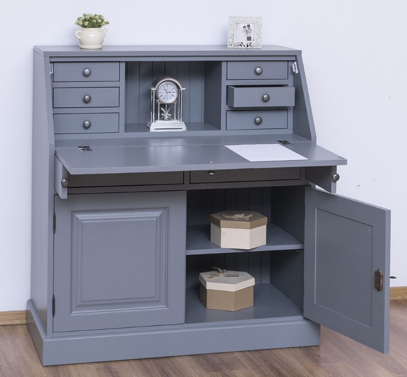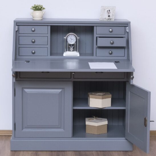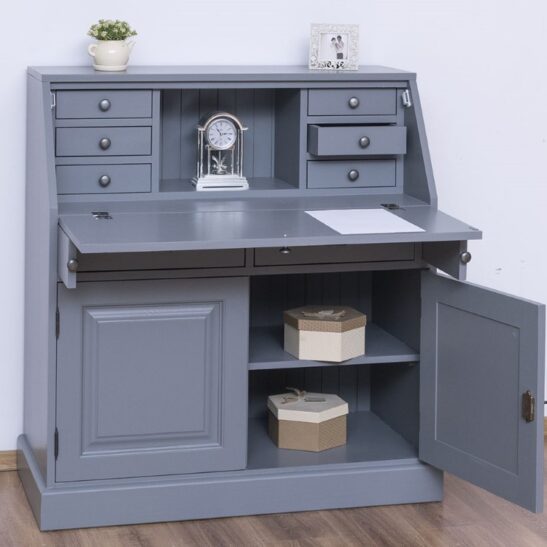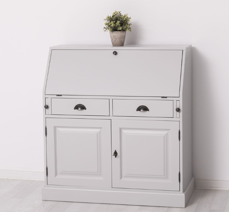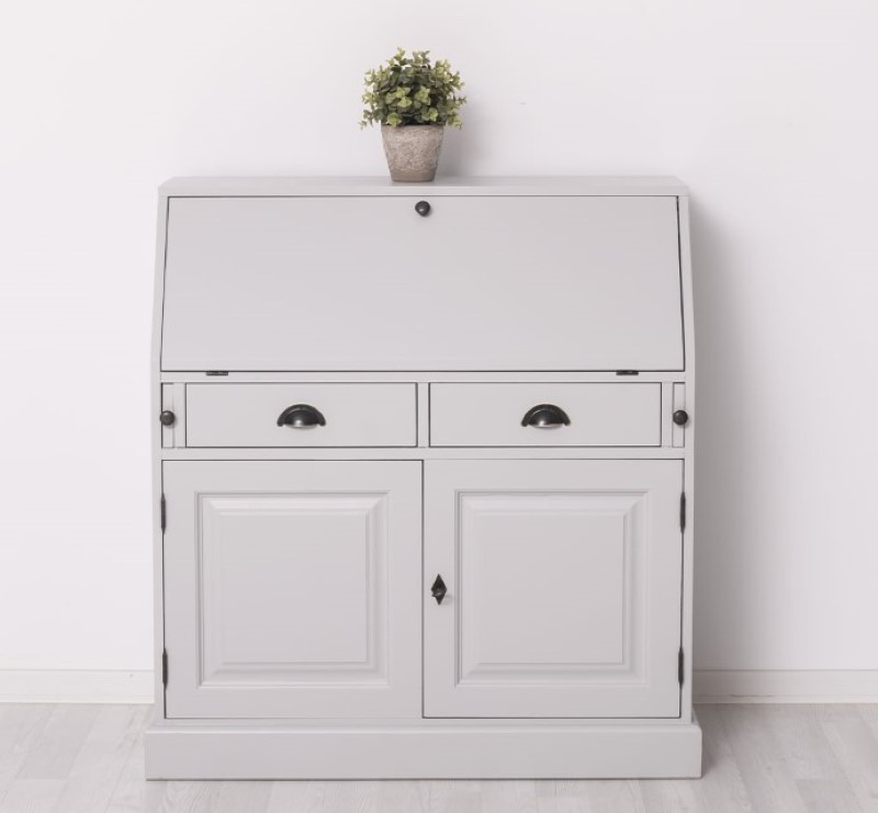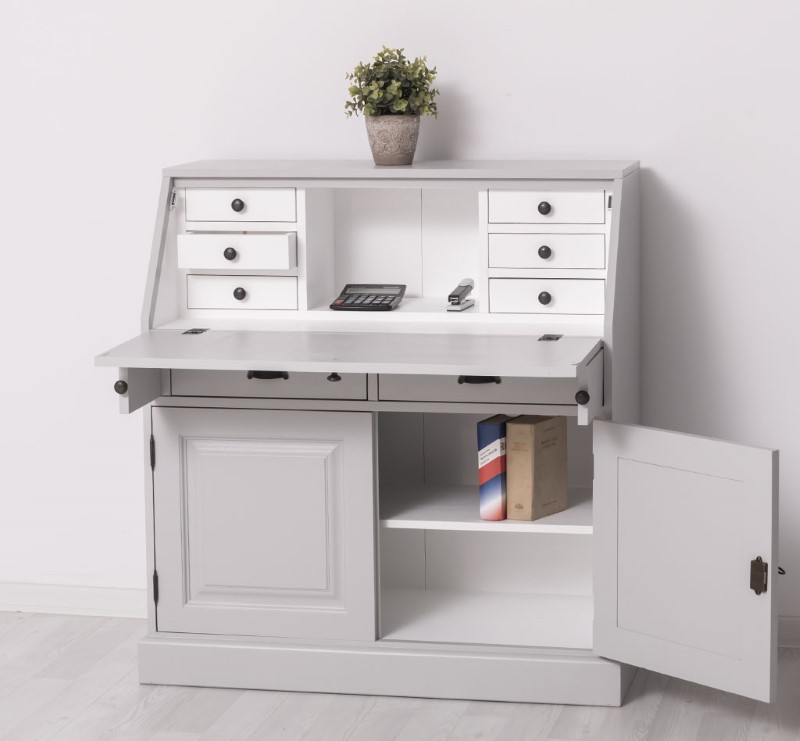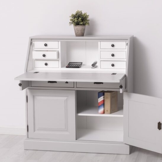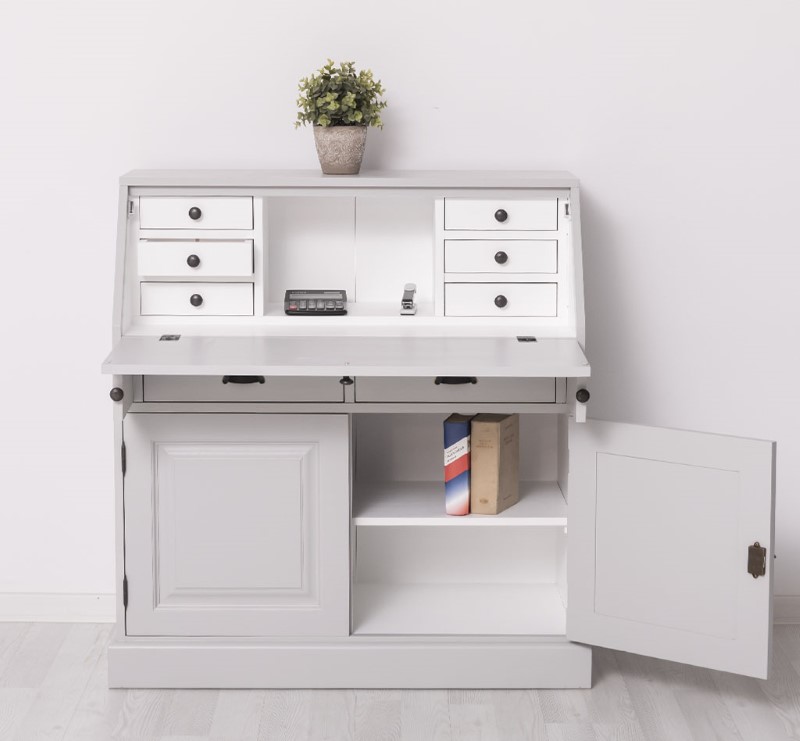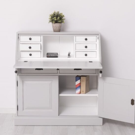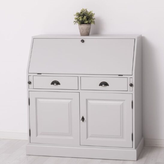 Secrétaire en pin massif de 104 cm alliant charme naturel et fonctionnalité : ce bureau compact propose un plateau intégré, deux tiroirs spacieux et deux portes pour un rangement organisé des documents et fournitures, idéal pour un coin bureau ou une entrée. Sa structure en pin massif assure robustesse et longévité tandis que la finition grise apporte une touche contemporaine et lumineuse qui s’accorde à de nombreux intérieurs. Conçu pour être modulable, ce meuble peut être personnalisé par vos soins ou choisi avec les finitions proposées sur notre site lokimob.fr afin d’obtenir l’aspect exact que vous souhaitez (teinte, patine, vernis mat ou satiné). Dimensions et proportions étudiées pour optimiser l’espace sans sacrifier le confort d’usage : plateau de travail pratique, tiroirs coulissants et portes à fermeture stable. Fabrication en bois massif, assemblages soignés et finitions durables garantissent un meuble à la fois esthétique et fonctionnel, parfait pour un usage quotidien ou comme pièce d’appoint élégante.