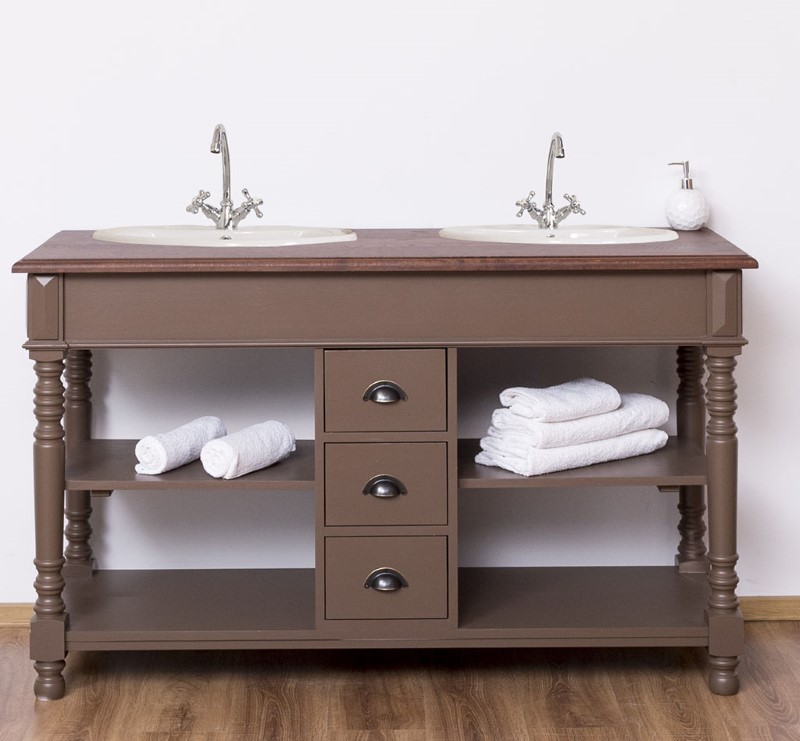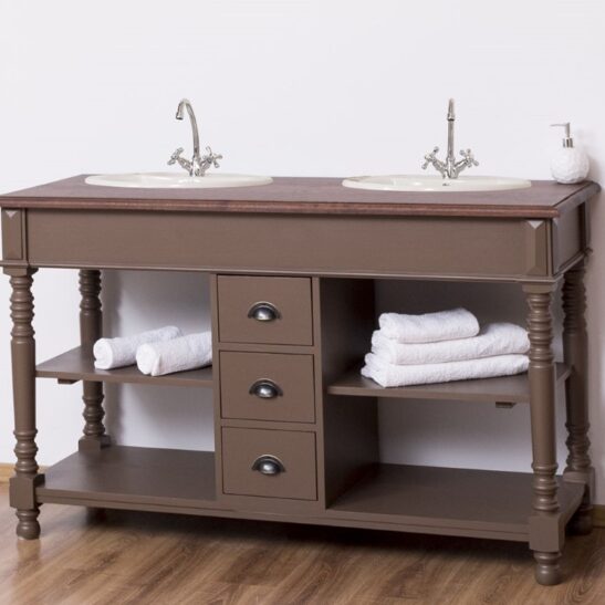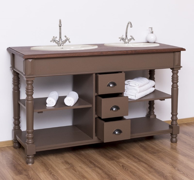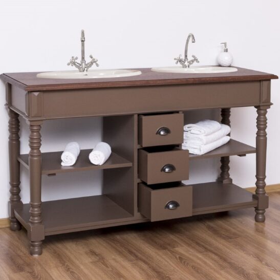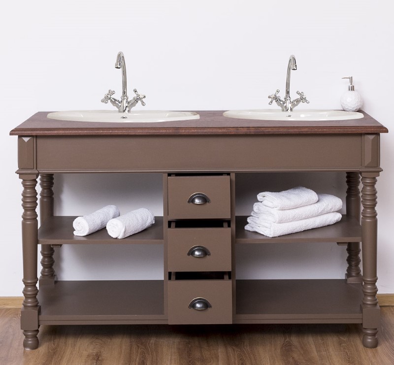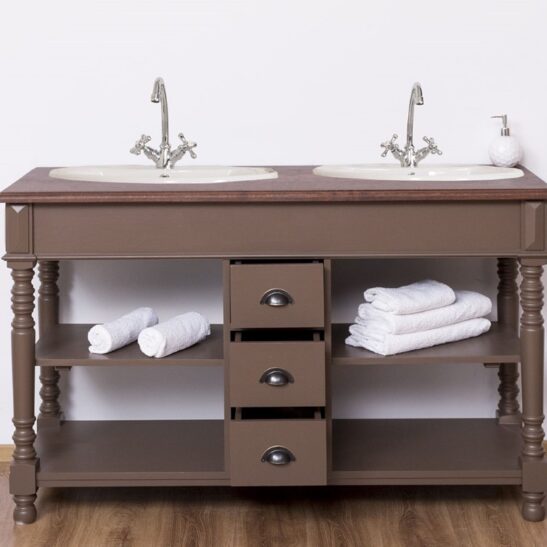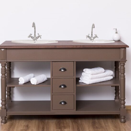 Meuble sous-vasque double 150 cm en pin massif (éviers et robinetteries non inclus)