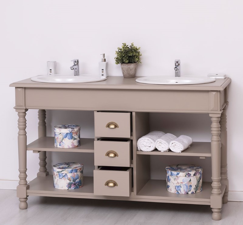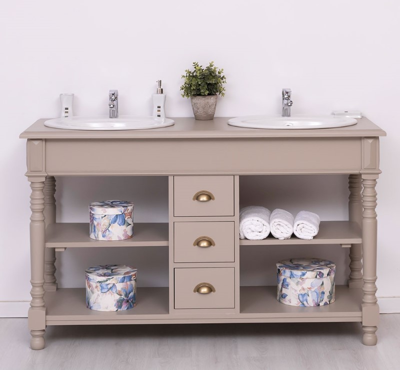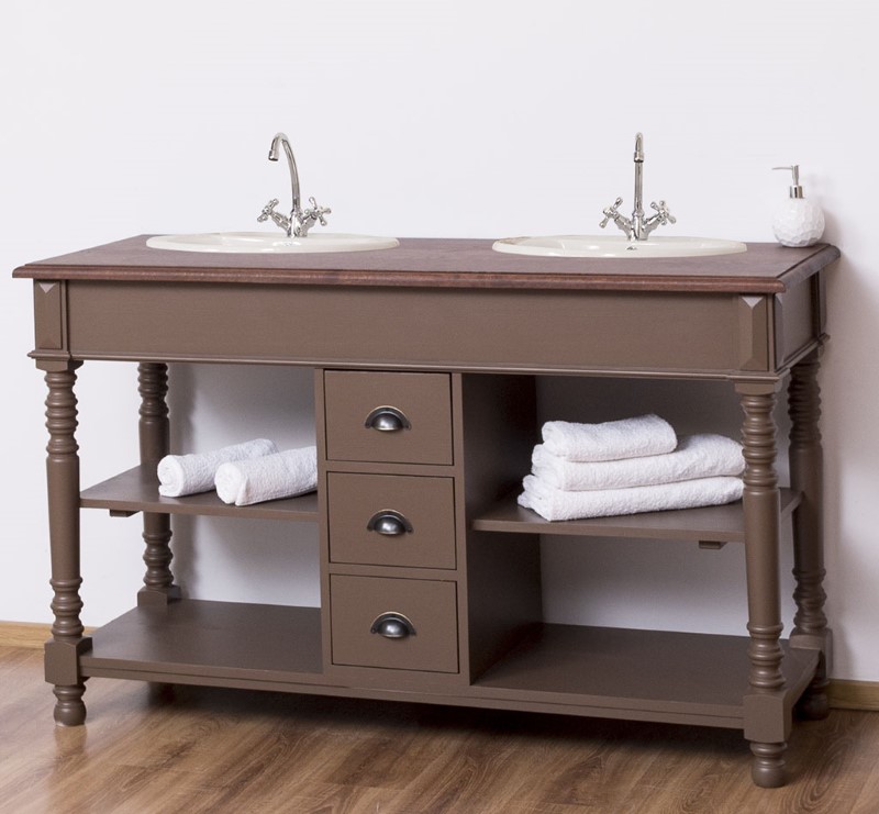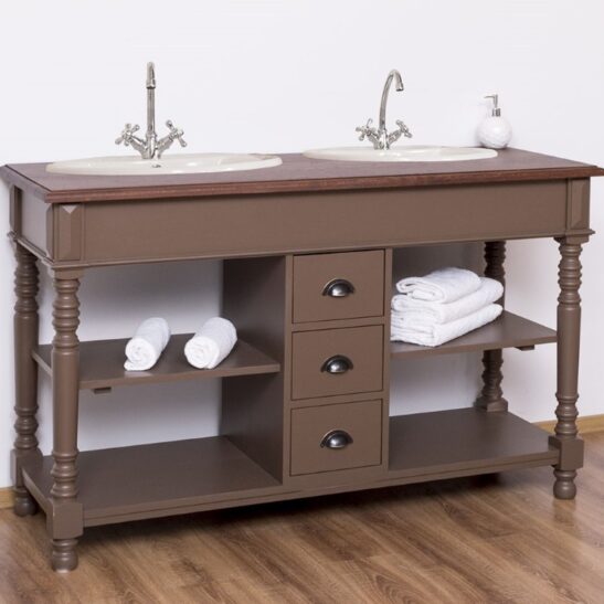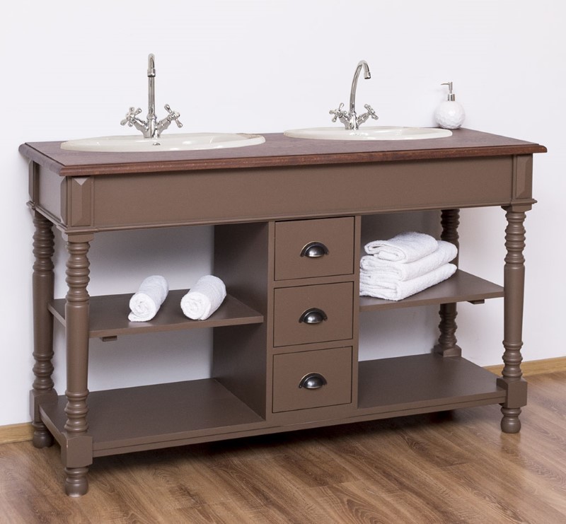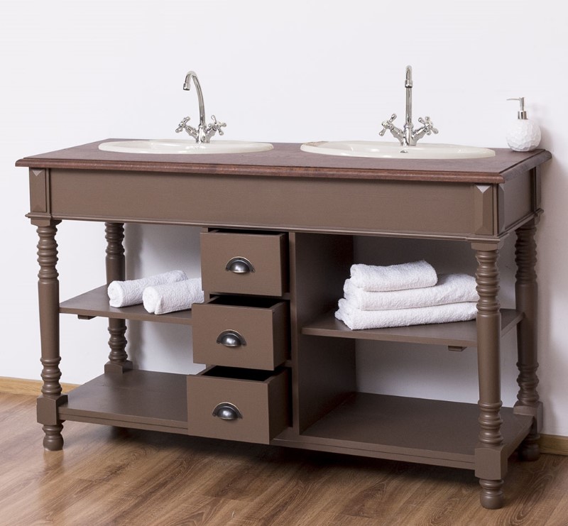 Meuble sous-vasque double 150 cm en pin massif (éviers et robinetteries non inclus)