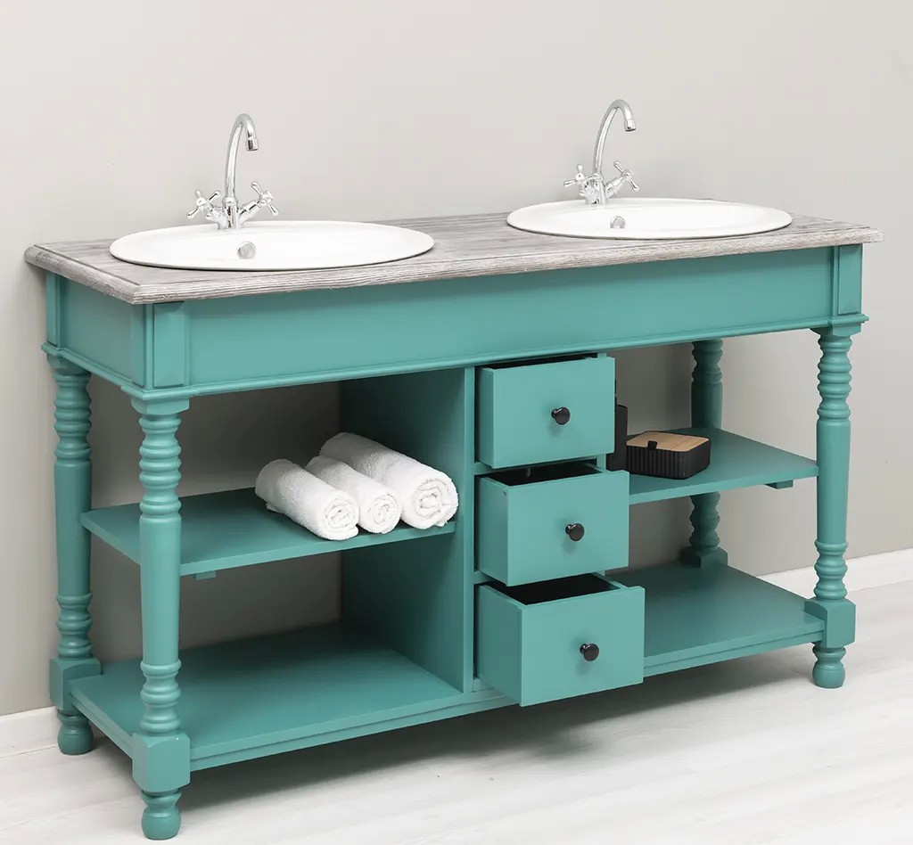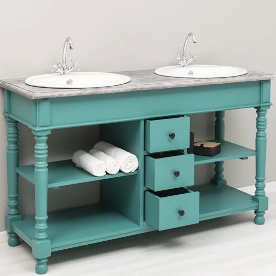 Meuble de salle de bain double vasques en pin massif pieds tournés 150 cm