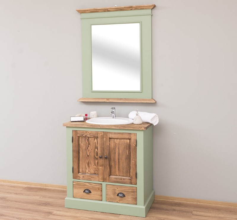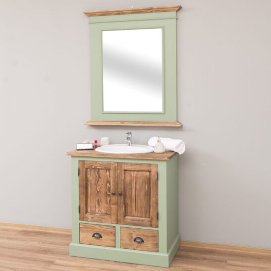 La vasque et le mitigeur ne sont pas inclus et peuvent être achetés si nécessaire. Vous êtes toujours à la recherche d'une belle vanité pour votre salle de bain ? Vous aimez les meubles et les équipements originaux dans un style vintage ? La haute qualité, la stabilité et la durabilité jouent pour vous un rôle majeur lors de l'achat de vos meubles ? Nous avons exactement ce qu'il vous faut : ce ravissant meuble pour vasque au style vintage ! Grâce à sa fabrication en bois massif de haute qualité, il est particulièrement stable et robuste, vous pourrez donc en profiter longtemps ! Son design est plutôt sobre et simple, mais il reste attrayant et élégant, dans le style provençal. Le placard intégré à deux portes offre un grand espace de rangement pour les serviettes et autres articles essentiels de la salle de bain. Vous avez également la possibilité de ranger d'autres objets dans deux tiroirs qui s'ouvrent à l'aide de poignées coquilles. Nous proposons un large choix de variantes de finitions et de couleurs, afin que vous ayez la possibilité de coordonner le meuble sous-vasque LM180 avec votre mobilier existant. Les meubles de notre boutique en ligne peuvent être sélectionnés en différentes couleurs, bicolores ou dans des couleurs spéciales individuelles et ainsi être adaptés au mobilier existant et aux goûts personnels. Le look qui vous convient est garanti ! Astuce : complétez le meuble pour vasque à poser LM180 avec le miroir cadre en bois assorti LM138S et coordonnez les coloris du bois. Remarque : La vasque à intégrer n’est pas incluse et peut être achetée si nécessaire. Si vous commandez la vasque chez nous, le meuble sous vasque sera préparé pour l'installation (c'est-à-dire que la découpe du plateau pour intégrer la vasque sera effectuée). Si vous commandez le meuble sans vasque, la surface du plateau sera entièrement pleine.