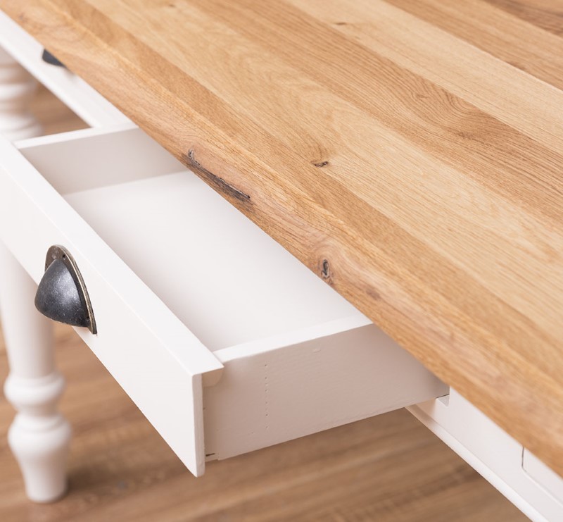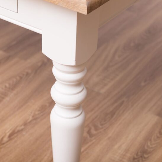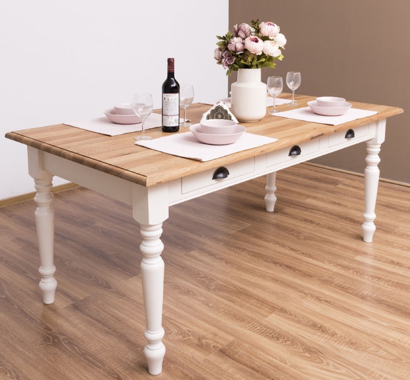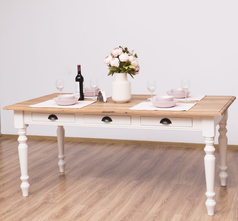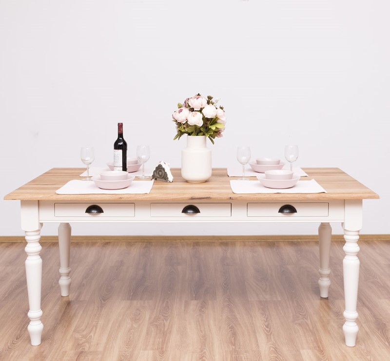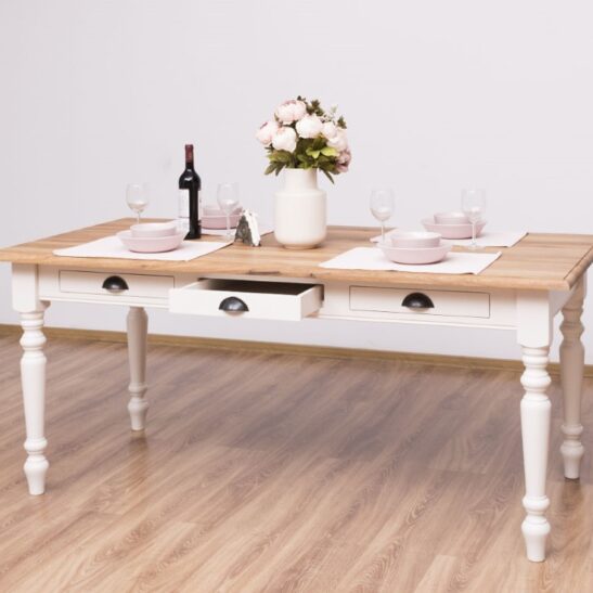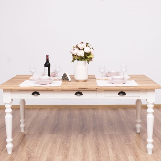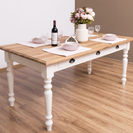 Table à manger en pin massif de qualité, dimensions 180 × 90 cm, équipée de trois tiroirs pratiques et de pieds tournés pour une silhouette élégante et traditionnelle. Conçue pour durer, cette table associe une structure robuste à un plateau épais offrant une excellente stabilité pour les repas quotidiens, les réunions de famille ou un usage mixte (repas et travail). Le pin massif apporte une chaleur naturelle et une belle patine qui se révèlent avec le temps ; les tiroirs coulissent facilement et permettent de ranger couverts, serviettes ou petits accessoires à portée de main. Finitions disponibles : vernis mat, cire naturelle, huile teintée ou peinture à la demande pour harmoniser la table à votre intérieur. Entretien simple : dépoussiérage régulier et application ponctuelle d’un produit adapté selon la finition choisie. Fabrication soignée avec assemblages traditionnels garantissant longévité et résistance; idéal pour un intérieur campagne, scandinave ou rustique revisité. Commandez la table en pin massif 180×90 cm pour bénéficier d’un meuble fonctionnel, esthétique et durable, prêt à recevoir la finition qui correspond à votre style.