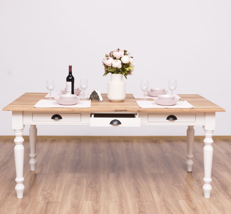 Table à manger pin massif 180×90 cm trois tiroirs pieds tournés