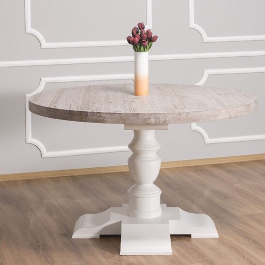 Table à manger ronde en pin massif 130 cm pied central tourné