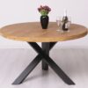 Son plateau rond généreux favorise la convivialité et permet d’accueillir confortablement plusieurs convives autour de la table. Le pied central tourné, véritable élément décoratif, assure une excellente stabilité tout en libérant l’espace pour les jambes, offrant ainsi un confort optimal lors des repas.