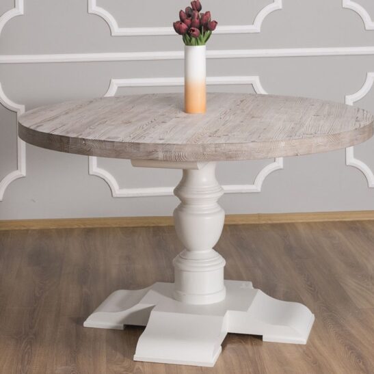 Table à manger ronde en pin massif 130 cm pied central tourné
